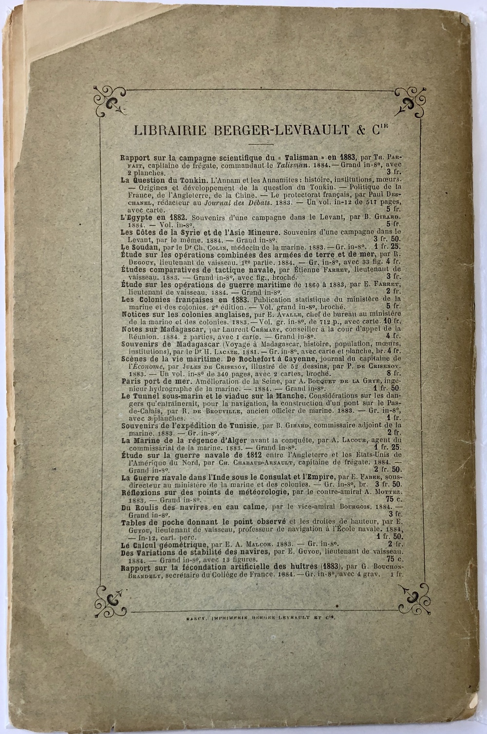 (Extrait de la Revue maritime et coloniale) / Dedication copy form the author.