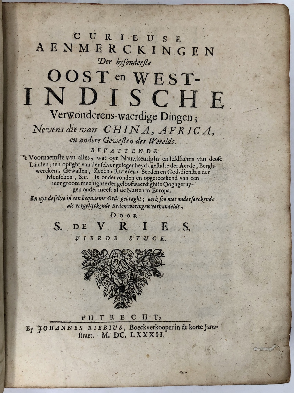 CURIEUSE AENMERCKINGEN Der besonderste OOST en WEST-INDISCHE Verwonderens-waerdige Dingen; Nevens die van CHINA, AFRICA, en andere Gewesten des Werelds…