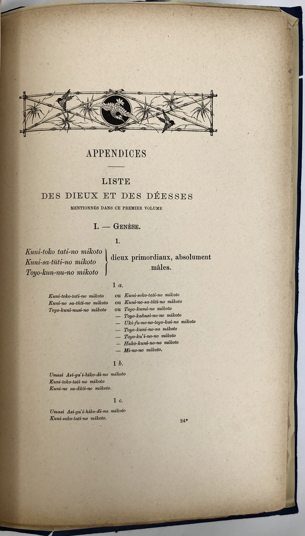 書紀 SYO - KI: LE LIVRE CANONIQUE DE L’ANTIQUITÉ JAPONAISE. PUBLIÉ EN JAPONAIS ET EN FRANÇAIS…TOME PREMIER.