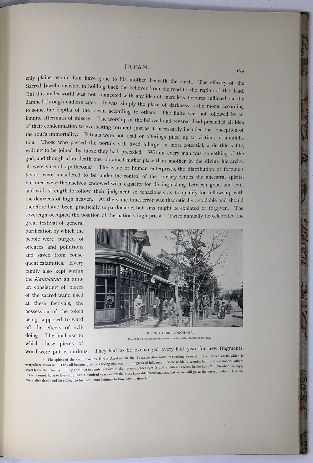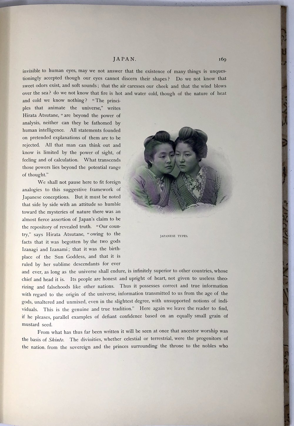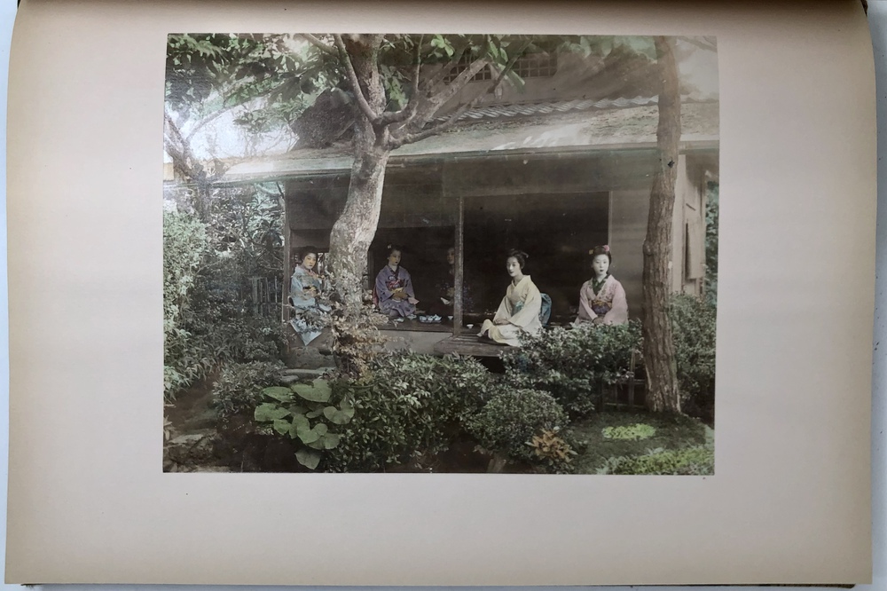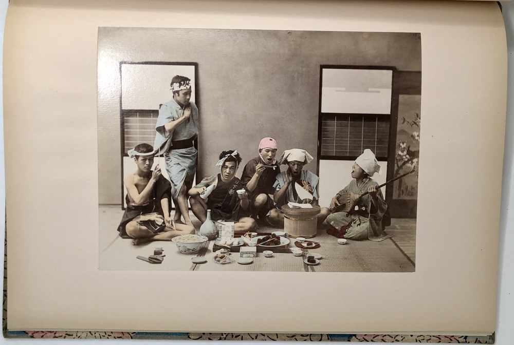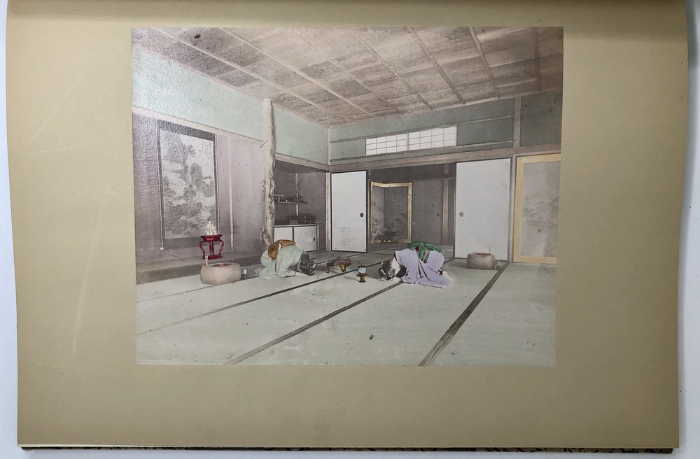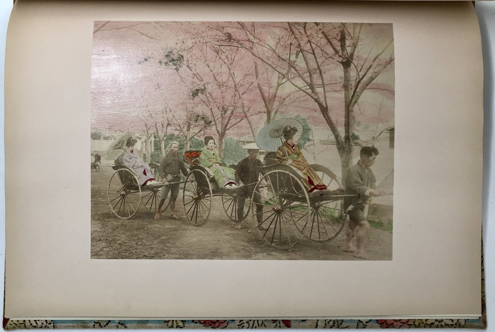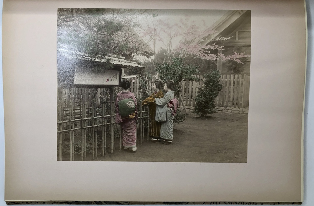 このように膨大なヴァリエーションの存在が確認されていますが、大別すると特別版と通常版との2つに分類することが可能で、前者はテキスト中の写真も全て手彩色が施されていることに加えて、大判手彩色写真の枚数が60枚と通常版の2倍収録されていることが基本的な特徴と言えます。本書である江戸版は、通常版に分類されるものです。