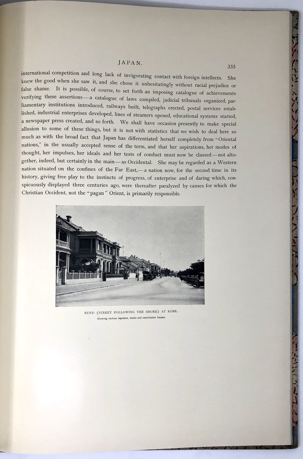 本書は、明治初期を代表する親日的ジャーナリストであったブリンクリーが、日本の魅力を発信するために全ての力を注いで作成した作品といえるもので、そのテキスト内容、写真、造本のいずれにおいても、他に類を見ない、総合的な「日本論」を表現した書物ということができるでしょう。本書は国内に一定数の所蔵が確認できますが、上記の通り、膨大なヴァリエーションがあるだけでなく、版によって収録写真内容が異なるために、それらを比較、照合していくことも今後の研究課題と言えそうです。