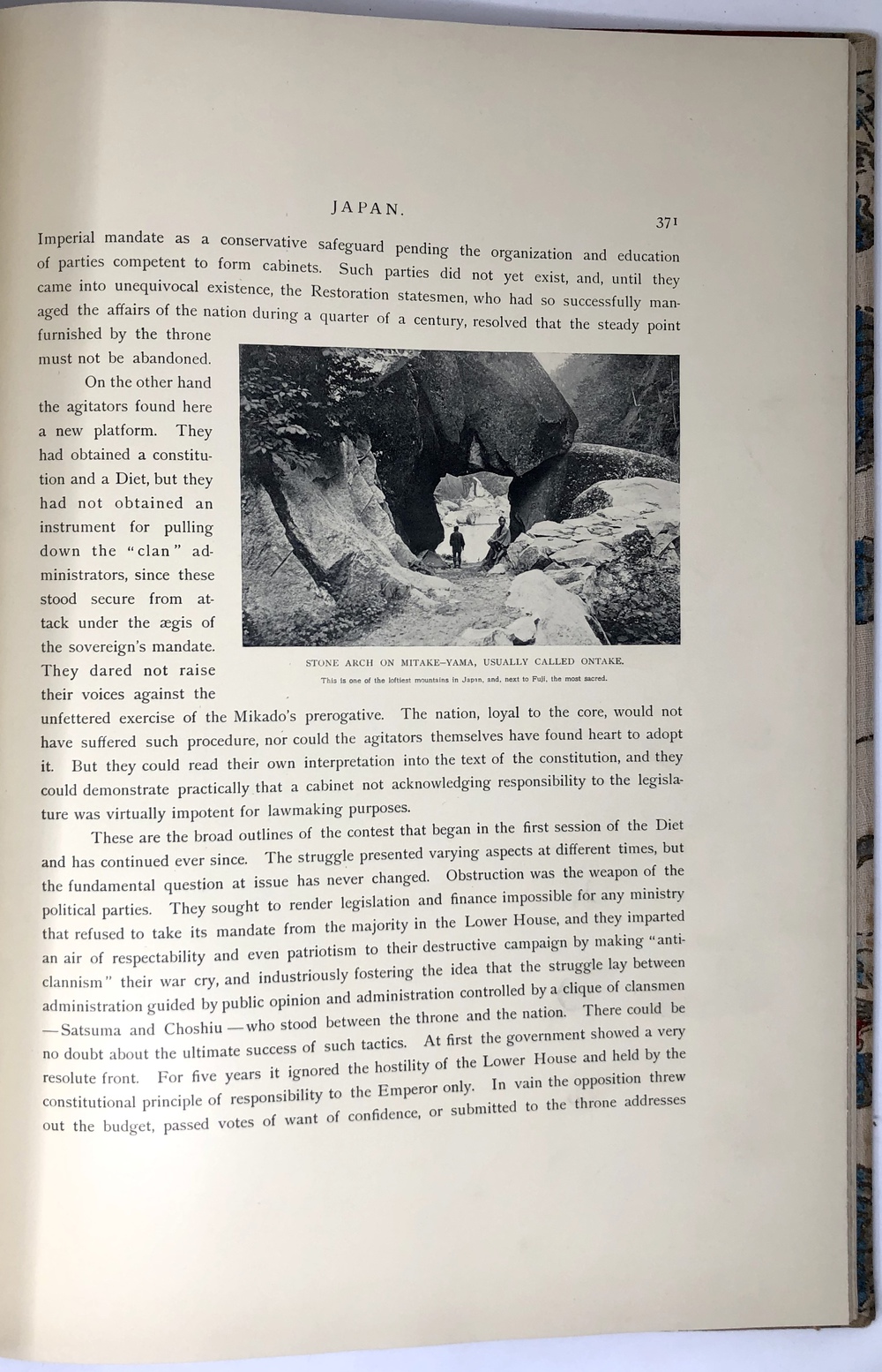 また、各巻の冒頭を彩る口絵写真を提供しているのは、コロタイプ印刷による写真集で高い評価を受けていた、小川一真の手になるものです。小川一真による「小川写真製版所」は、写真の印刷技術に特に秀でており、写真を用いた美術図版や雑誌刊行のパイオニア的存在として知られています。小川一真の写真作品の芸術性の高さ、比類のない印刷技術の高さが、ブリンクリーをして、自身の書物の冒頭を飾るに相応しい口絵写真として採用せしめたものと思われます。