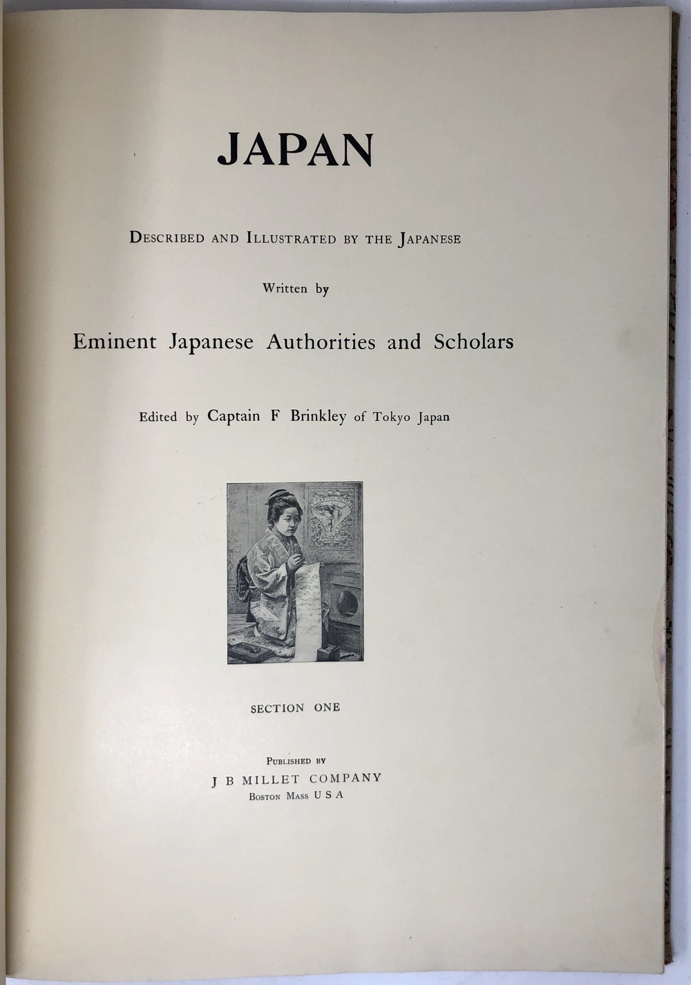 ブリンクリーは、各章の執筆者は、日本の信頼できる著者に依頼をしたと述べていますが、執筆者名を明らかにしていませんので、残念ながらテキストの作者を知ることはできません。テキストの構成には編者であるブリンクリーの強い個性が感じられますし、各章のテキストの内容も非常に詳細で質の高い記述が多いように見受けられることから、ブリンクリーが自身が最適と考えた著者に執筆を依頼したことは間違いないものと思われます。