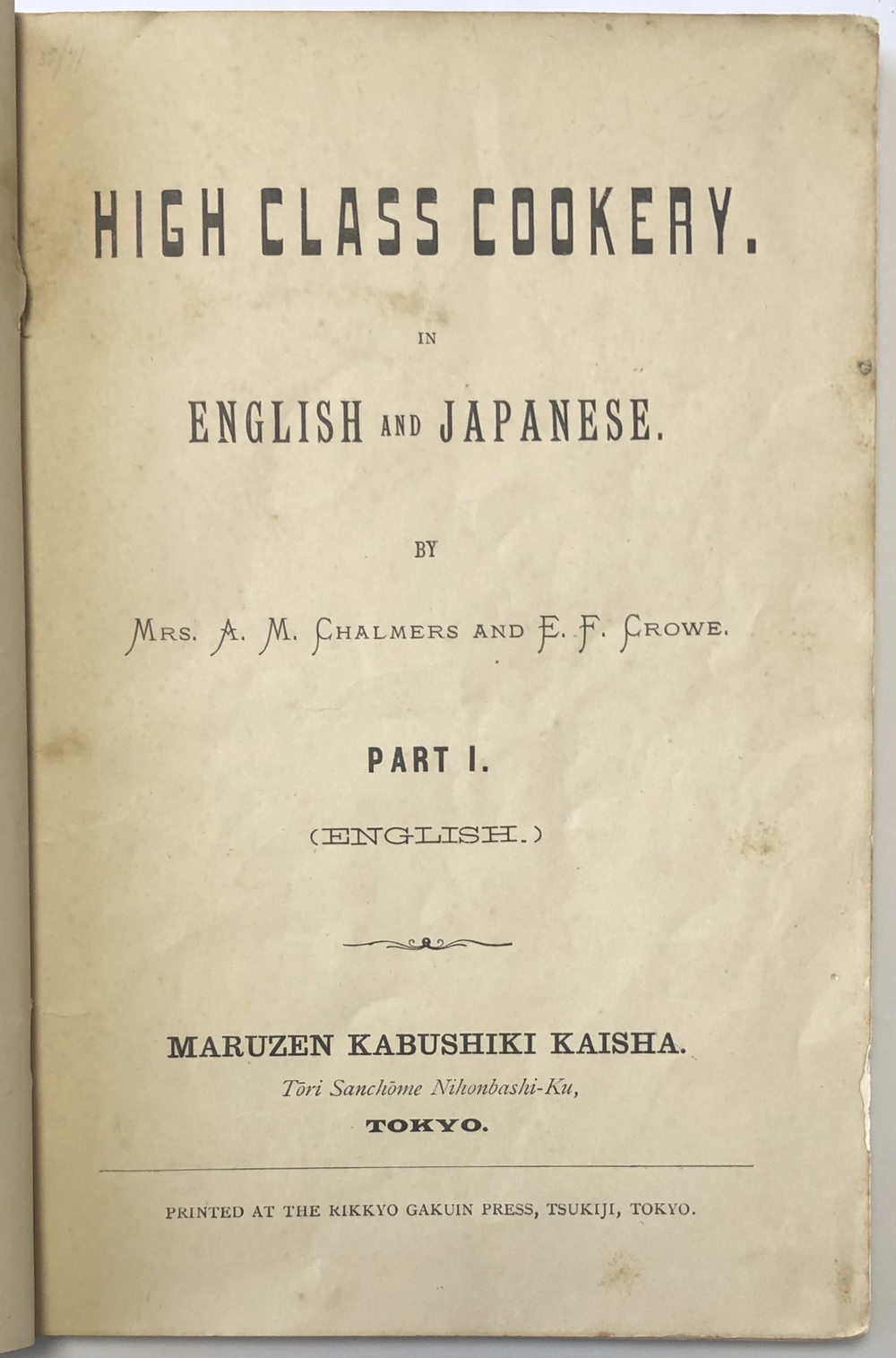 HIGH CLASS COOKERY. IN ENGLISH AND JAPANESE. PART I. (ENGLISH).