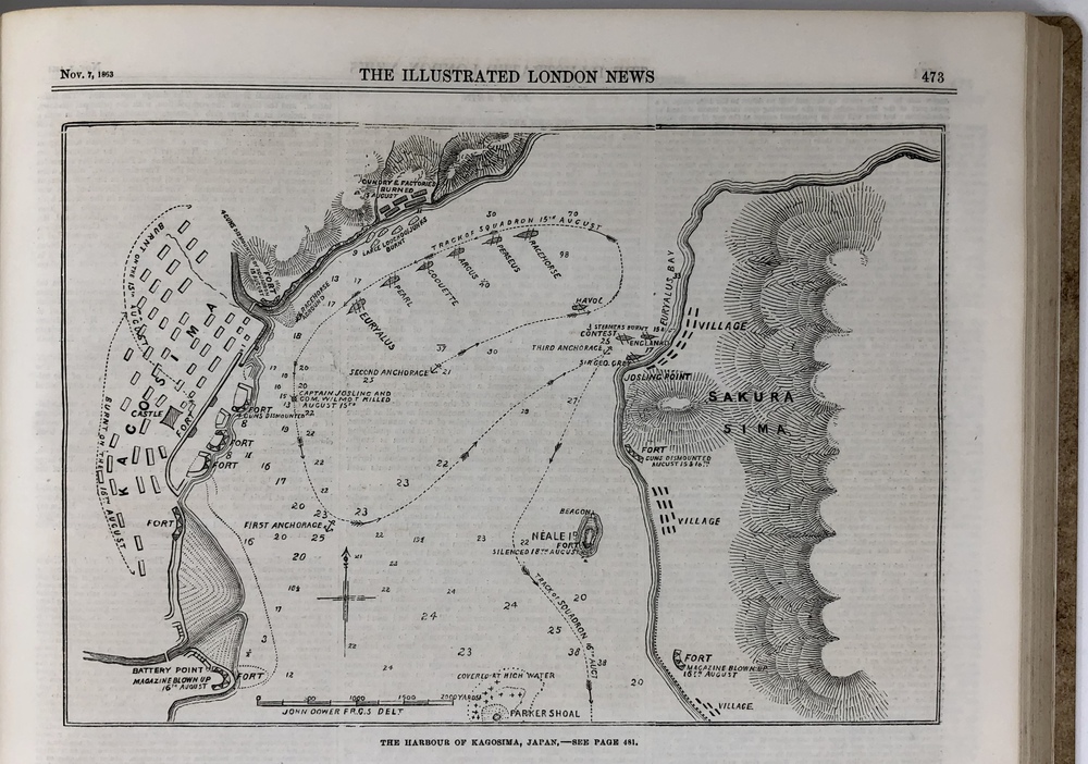 19. No.1230: Saturday, November 7, 1863. (pp.453-484)*薩英戦争風景図、戦況鹿児島湾図含むワーグマンによる日本通信記事(8月28日付)、キューパー提督公式報告ほか(p.481-482)