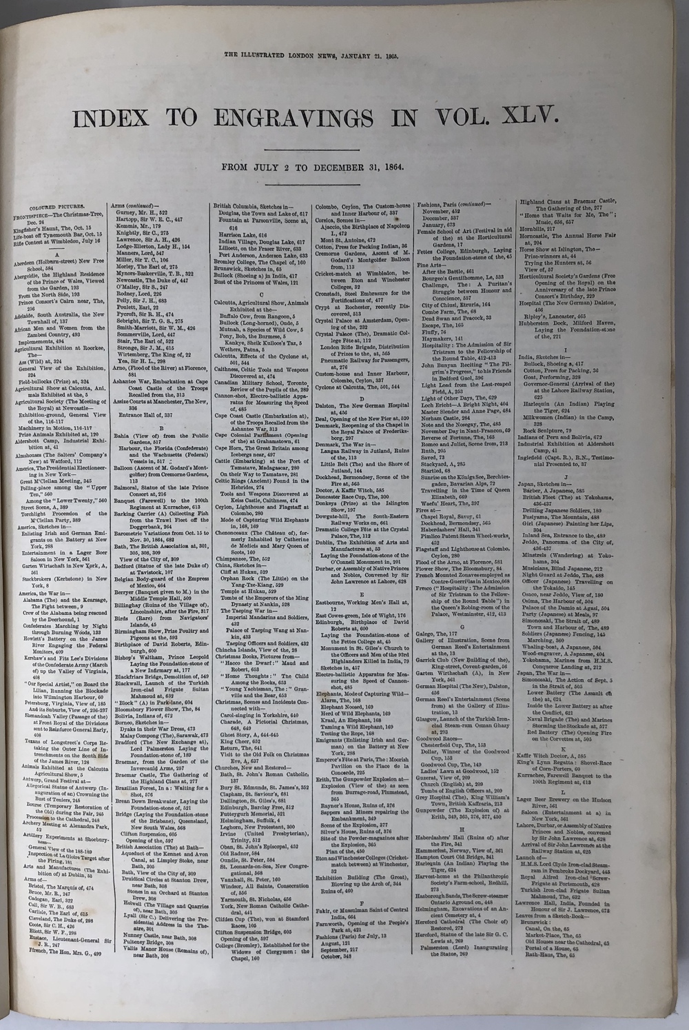 『イラストレイティッド・ロンドン・ニュース』は、1842年にロンドンで創刊された週刊誌で、その名の通り、イラストをふんだんに盛り込んだ独自の編集方針によって大成功を収め、視覚情報を重視したメディアの先駆けとなりました。同誌は世界中に特配員を派遣したほか、各国政府、公使館、領事館筋の情報をいち早く入手することで、世界各地の最新情報を読者に提供したことでも知られており、自宅にいながらにして最新の世界情勢を精細な図版とともに得ることができる画期的なメディアとして、当時のヨーロッパにおける情報流通の様相を大きく変容させたと言われています。