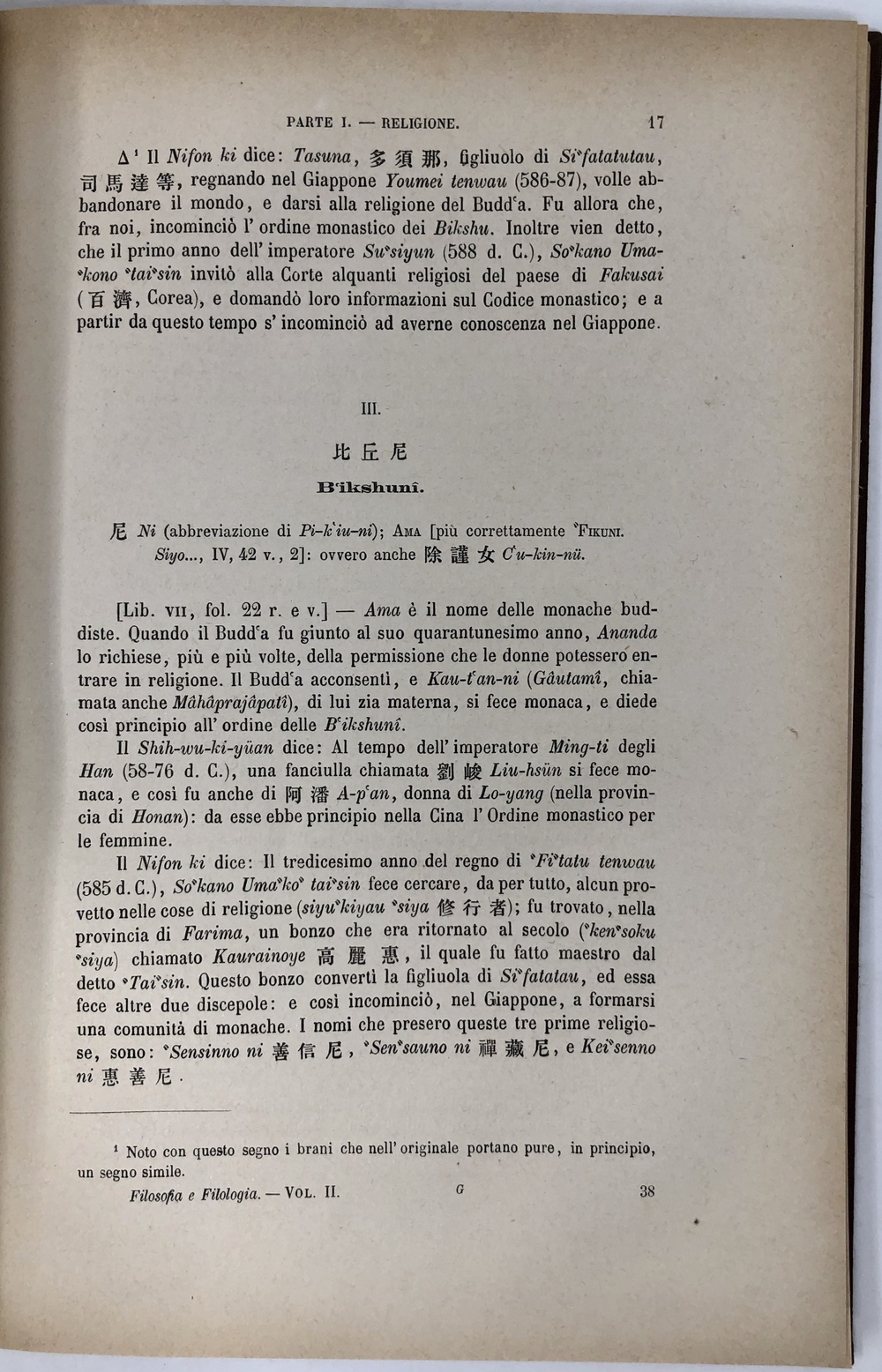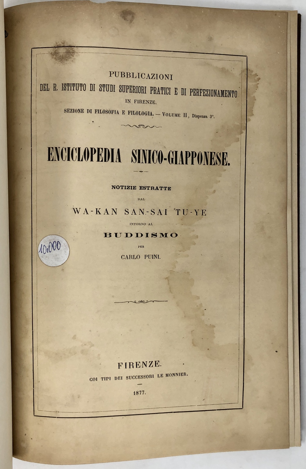 ENCICLOPEDIA SINICO-GIAPPONESE. NOTIZIE ESTRATTE DAL WA-K AN SAN-SAI “TU-YE. INTORNO AL BUDDISMO. (PUBBLICAZIONI DEL R.ISTITUTO DI STUDI SUPERIORI PRATICI E DI PERFEZIONAMENTO IN FIRENZE. SEZIONE DI FILOSOFIA E FILOLOGIA. VOLUME II, Dispensa 3a)