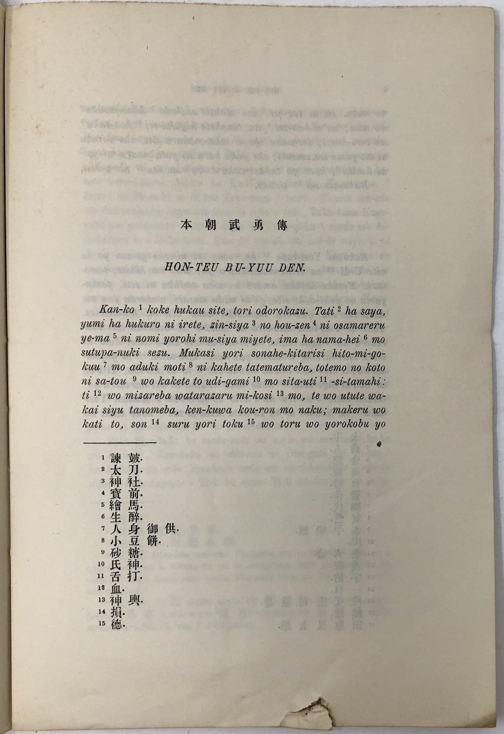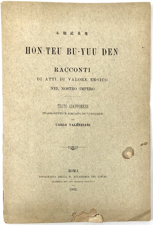 本朝武勇傳 HON-TEU BU-YUU DEN: RACCONTI DI ATTI DI VALORE EROICO NEL NOSTRO IMPERO. TESTO GIAPPONESE TRANSCRITTO E RECATO IN VOLGARE.