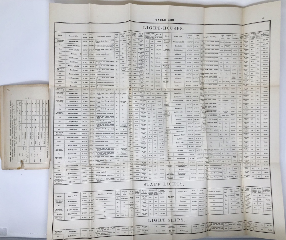 1 leaf, pp.1-59(folding list; TABLE XVIII. LIGHT-HOUSES. STAFF LIGHTS. LIGHT SHIPPS.), 60 (folding list; TABLE XIX. BUOYS. BEACONS.), 61, 1 leaf,