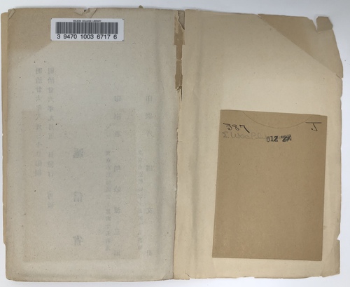 表紙が本体から外れている。旧WILLSON COLLEGE所蔵のためラベルと巻末にポケットあり。