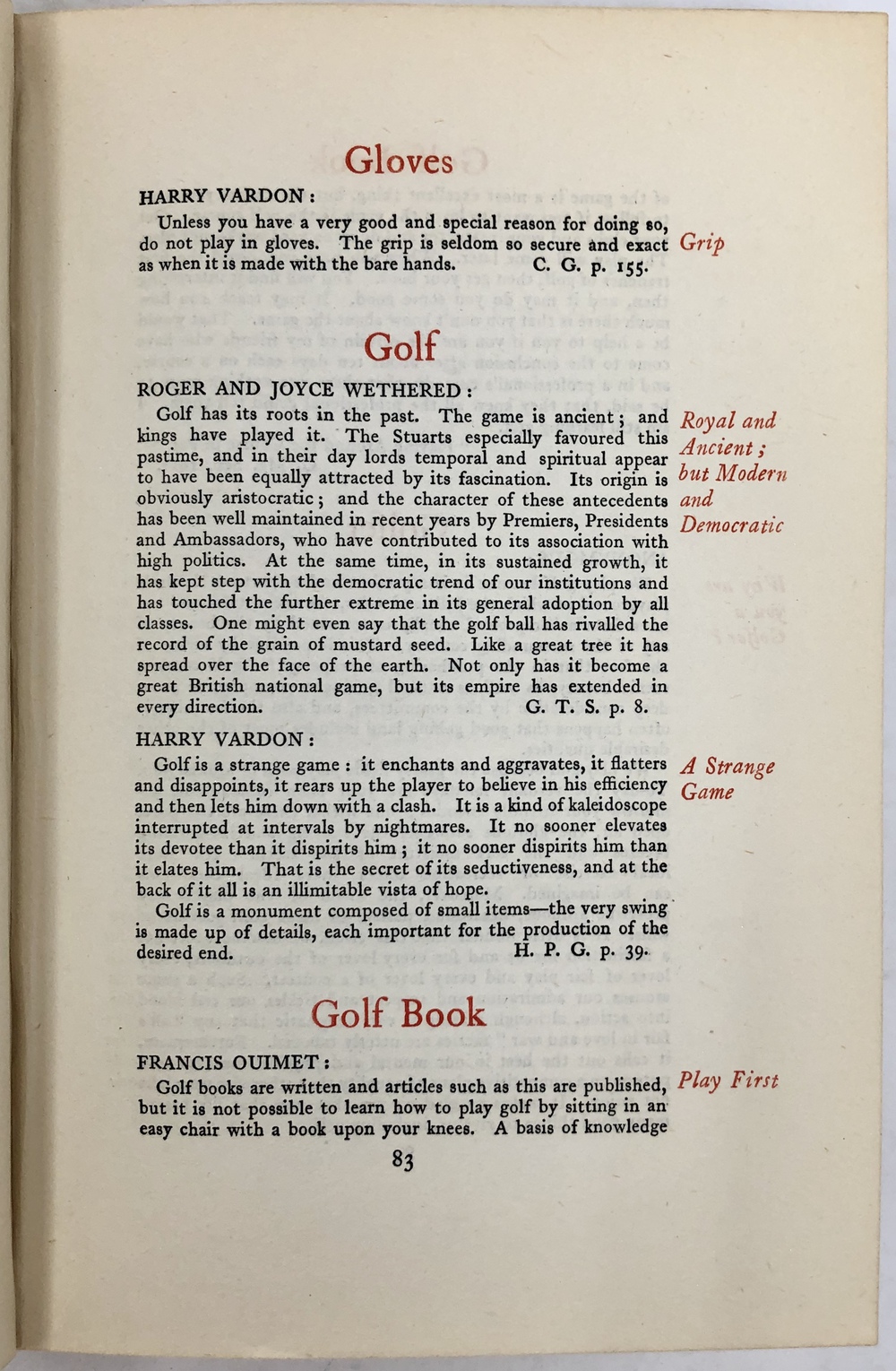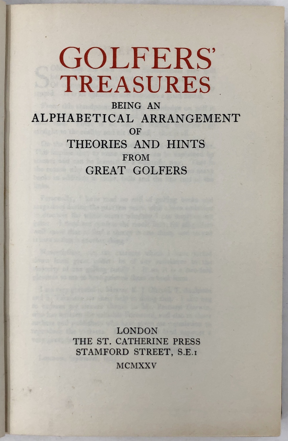 GOLFERS’ TREASURES: BEING AN ALPHABETICAL ARRANGEMENT OF THEORIES AND HINTS FROM GREAT GOLFERS.