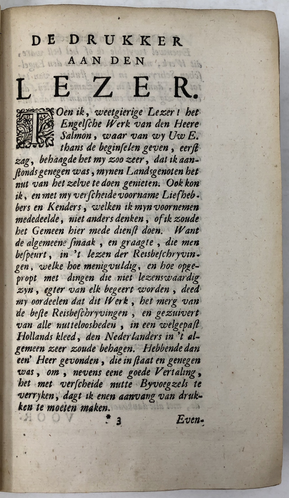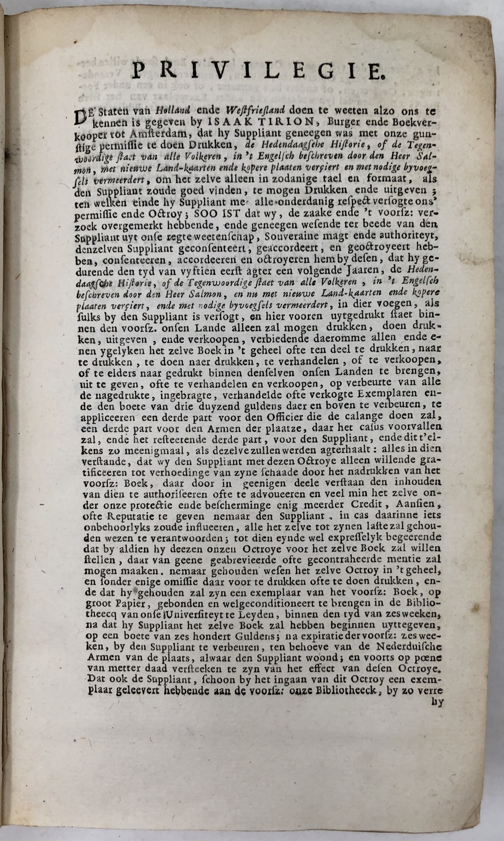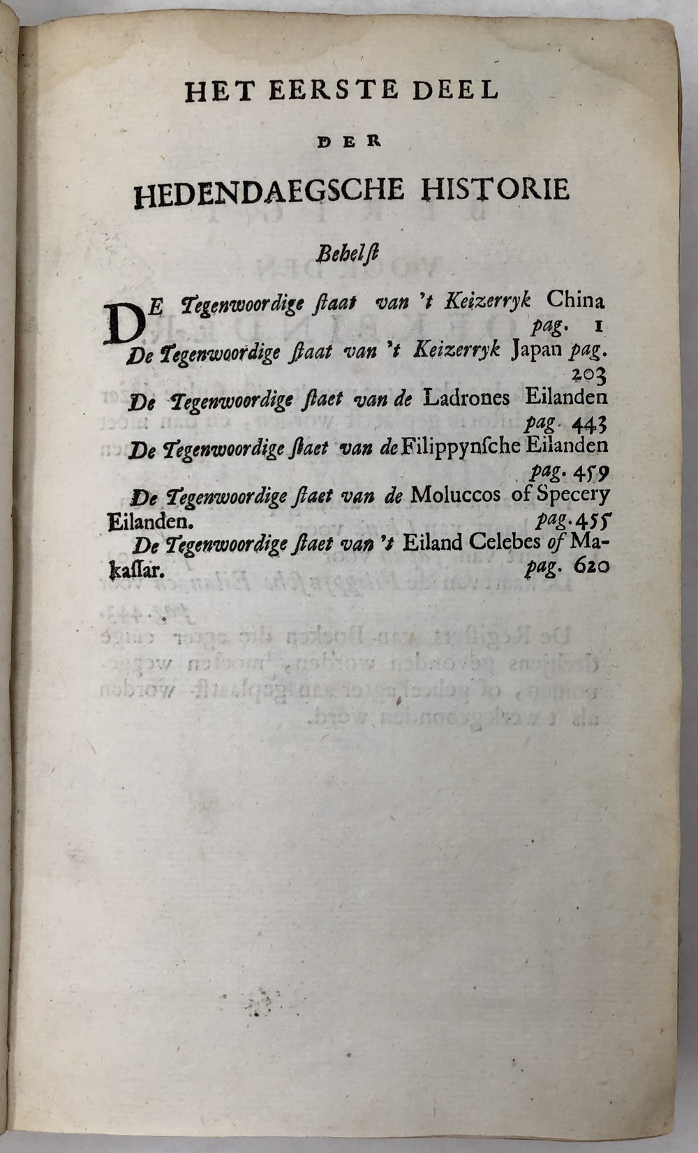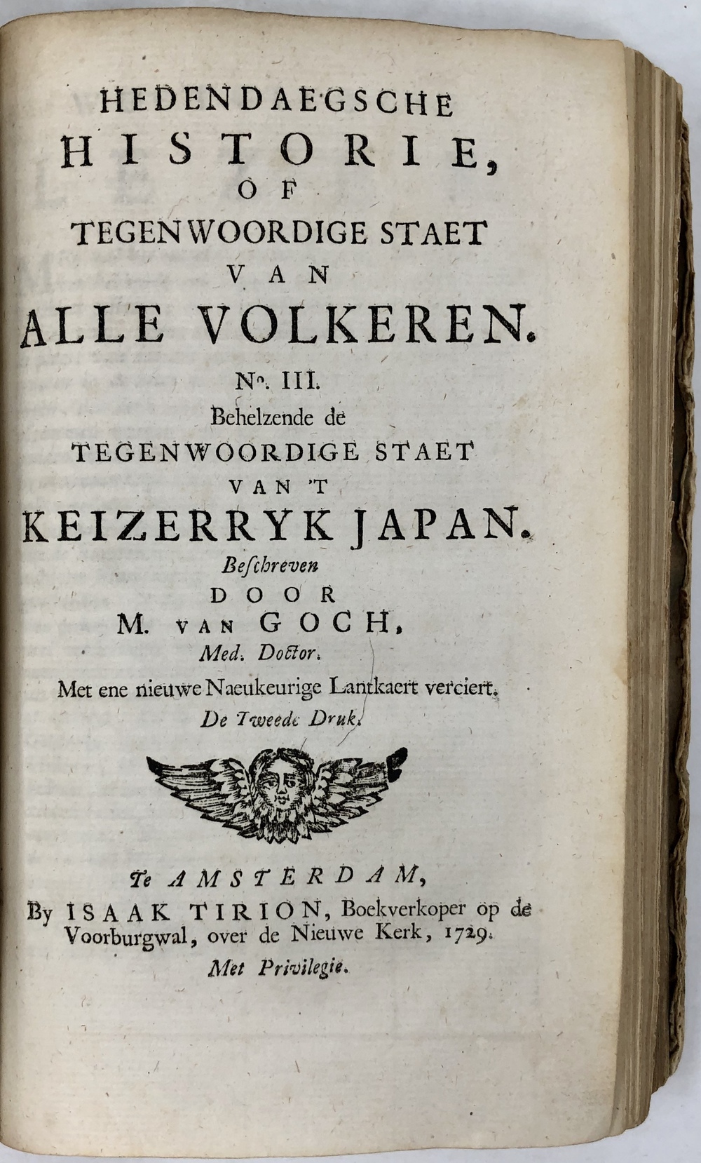 HEDENDAEGSCHE HISTORIE, OF TEGENWOORDIGE STAET VAN ALLE VOLKEREN;…Eerst in ’t Engels beschreven door Th. SALMON; nu vertelt en merkelijk vermeerdert door M.van GOCH, M. D. I. DEEL. Behelzende de Tegenwoordige staat der Keizerryken CHINA en JAPAN,…