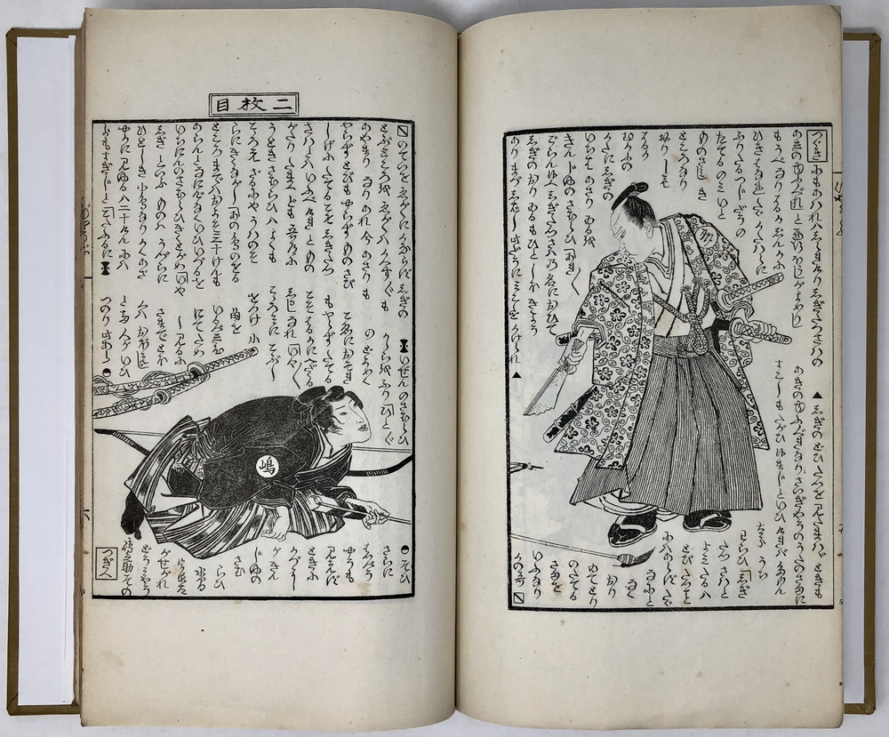 Original brown cover leaf, pp.[I(Half Title.)-III(Title.)-V], VI-XIV, [1], 2-40, 1 leaf(blank), 41 to 20 numbered (inJapanese) leaves, 1 leaf(Title. of 2nd vol.), 19 to 4 numbered (in Japanese) leaves, 3 leaves(introduction and 6 illustrated character,