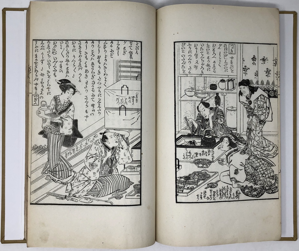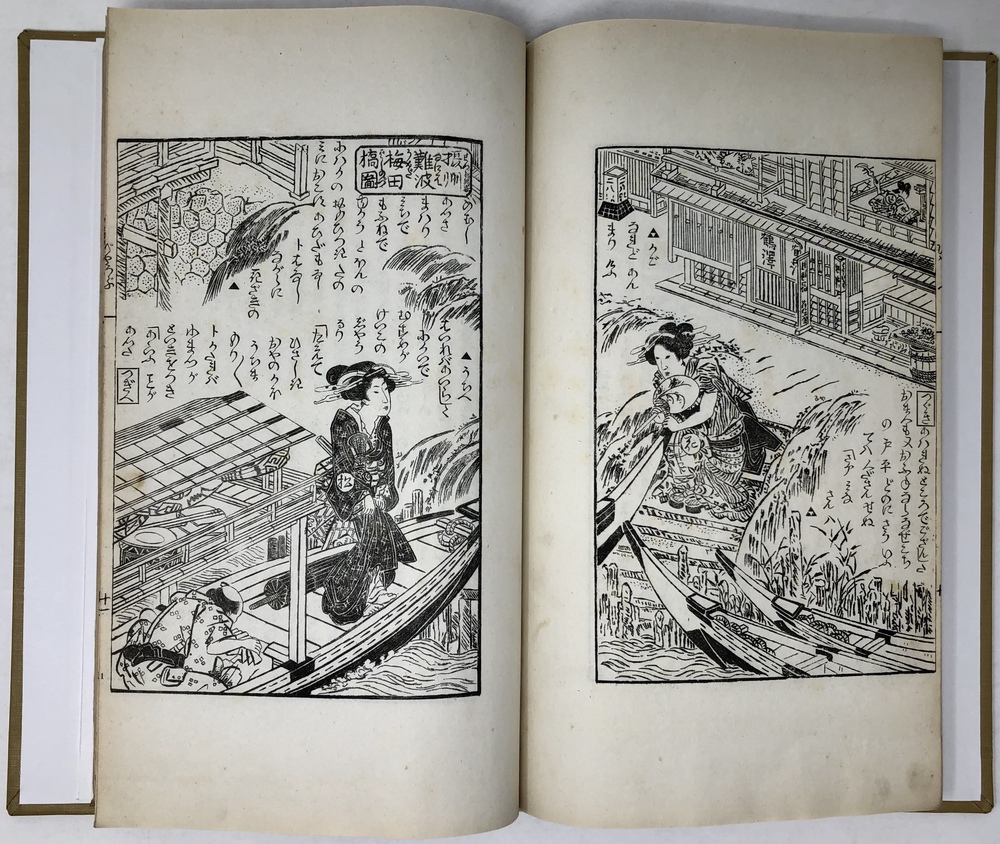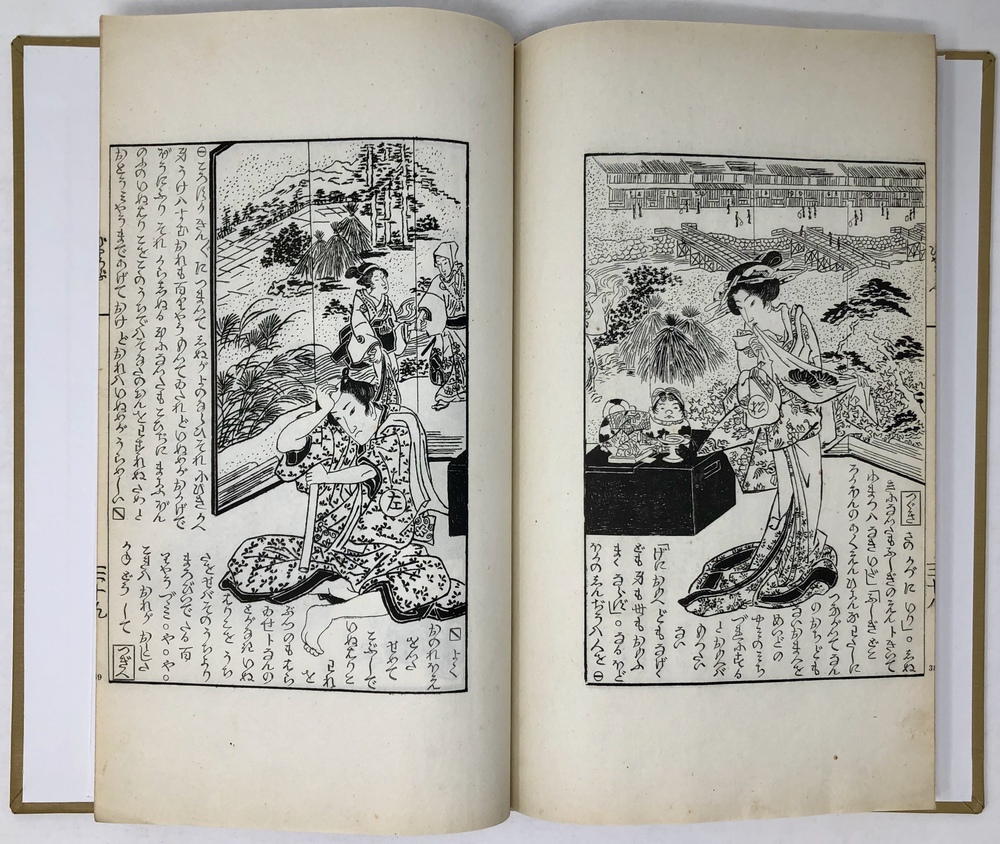 Sechs Wandschirme in Gestalten der vergänglichen Welt. Ein japanischer Roman in Originaltexte stammt den Facsimiles von 57 japanischen Holzschnitten.