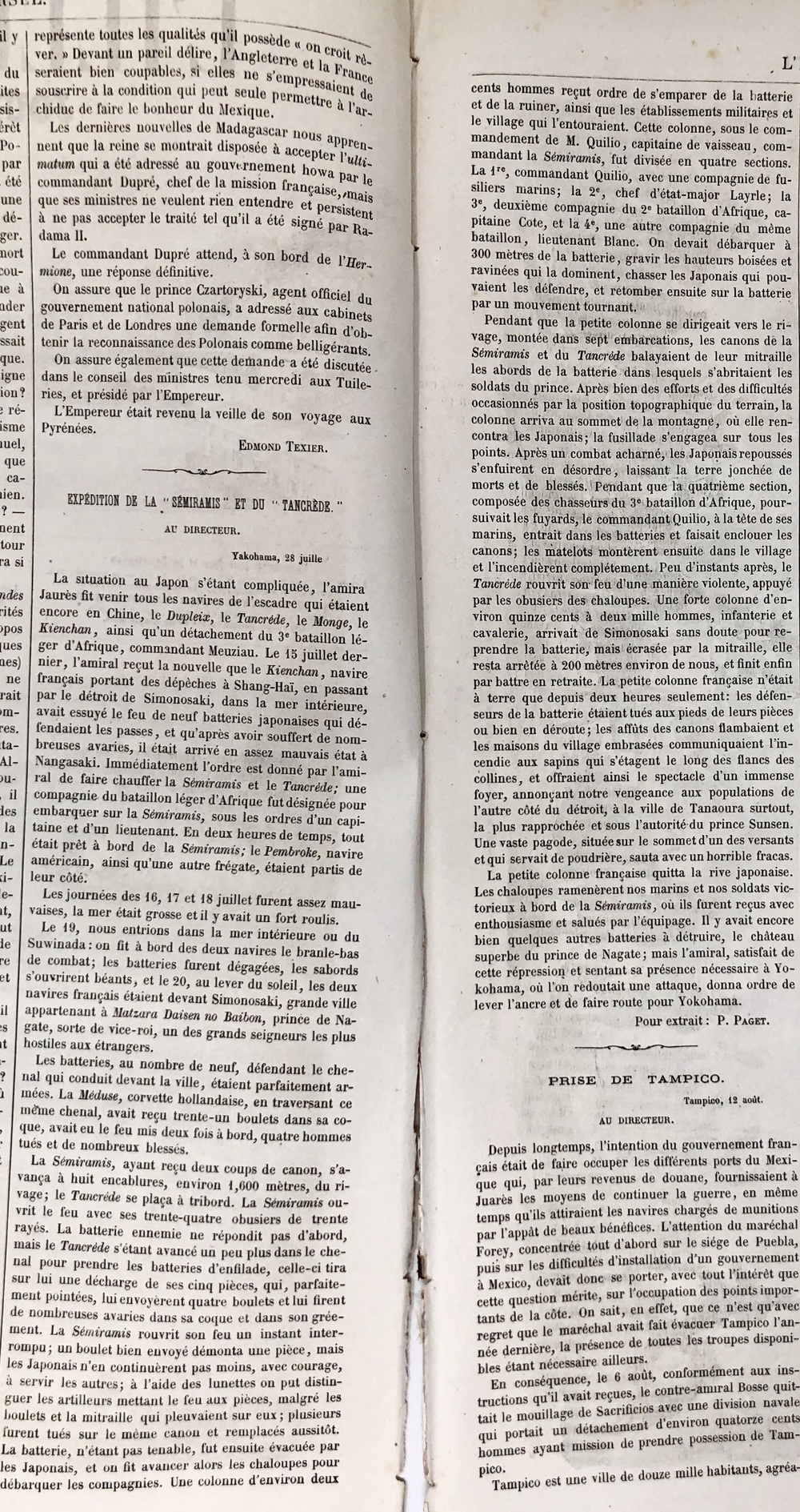 L’ILLUSTRATION, JOURNAL UNIVERSEL. 21e ANNÉE. VOL. XLII. No.1076. Samedi 10 Octobre 1863.