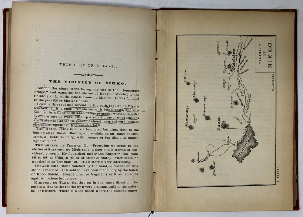製本の綴じにゆるみがあり、本体と外れかけている箇所あり。「日光」の箇所中心に線引き、書き込みあり