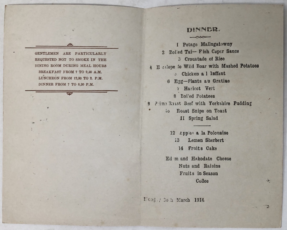 12. 日本郵船 / 都ホテルほか「ディナーメニュー」6枚 1913年〜1914年