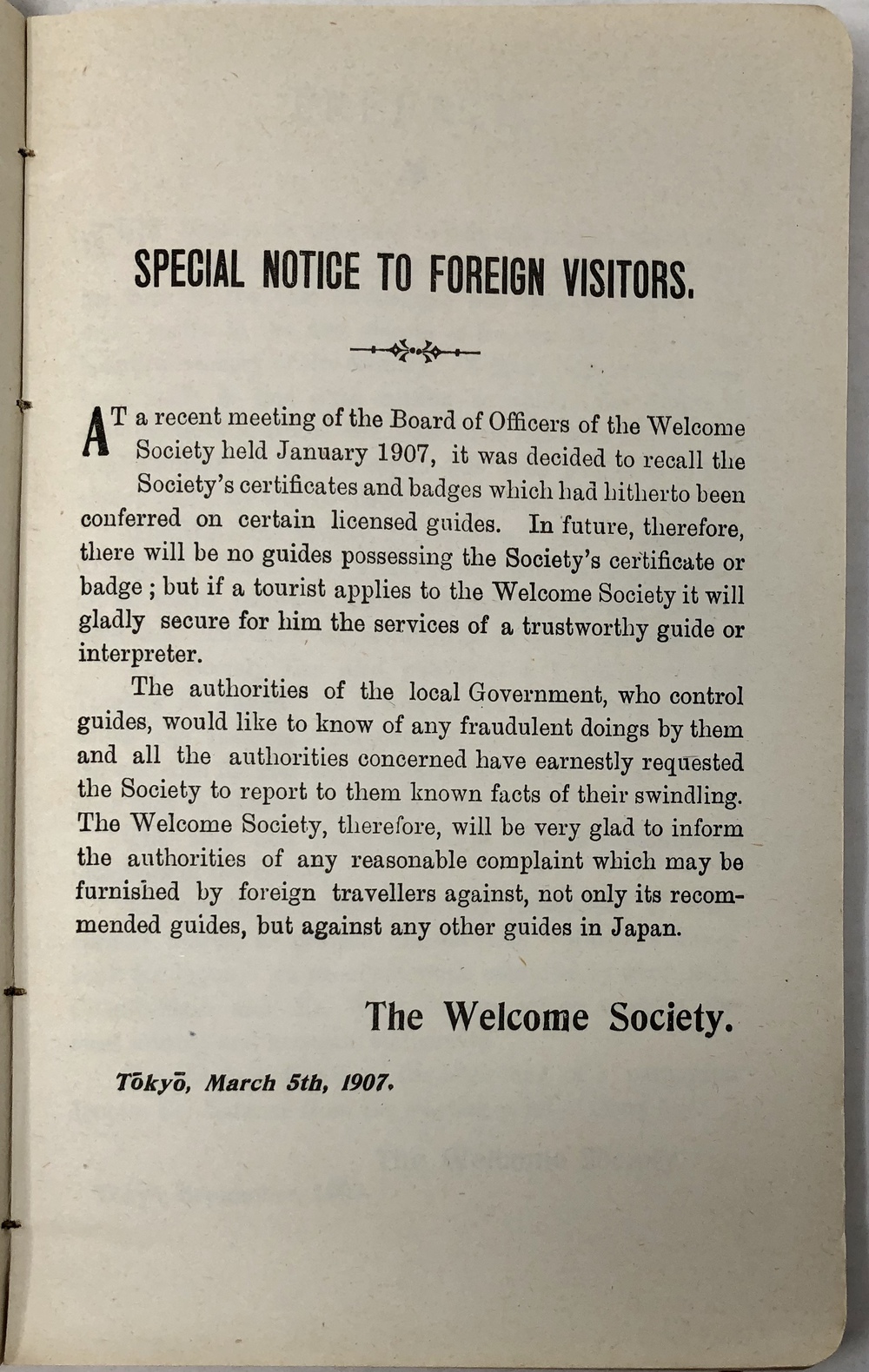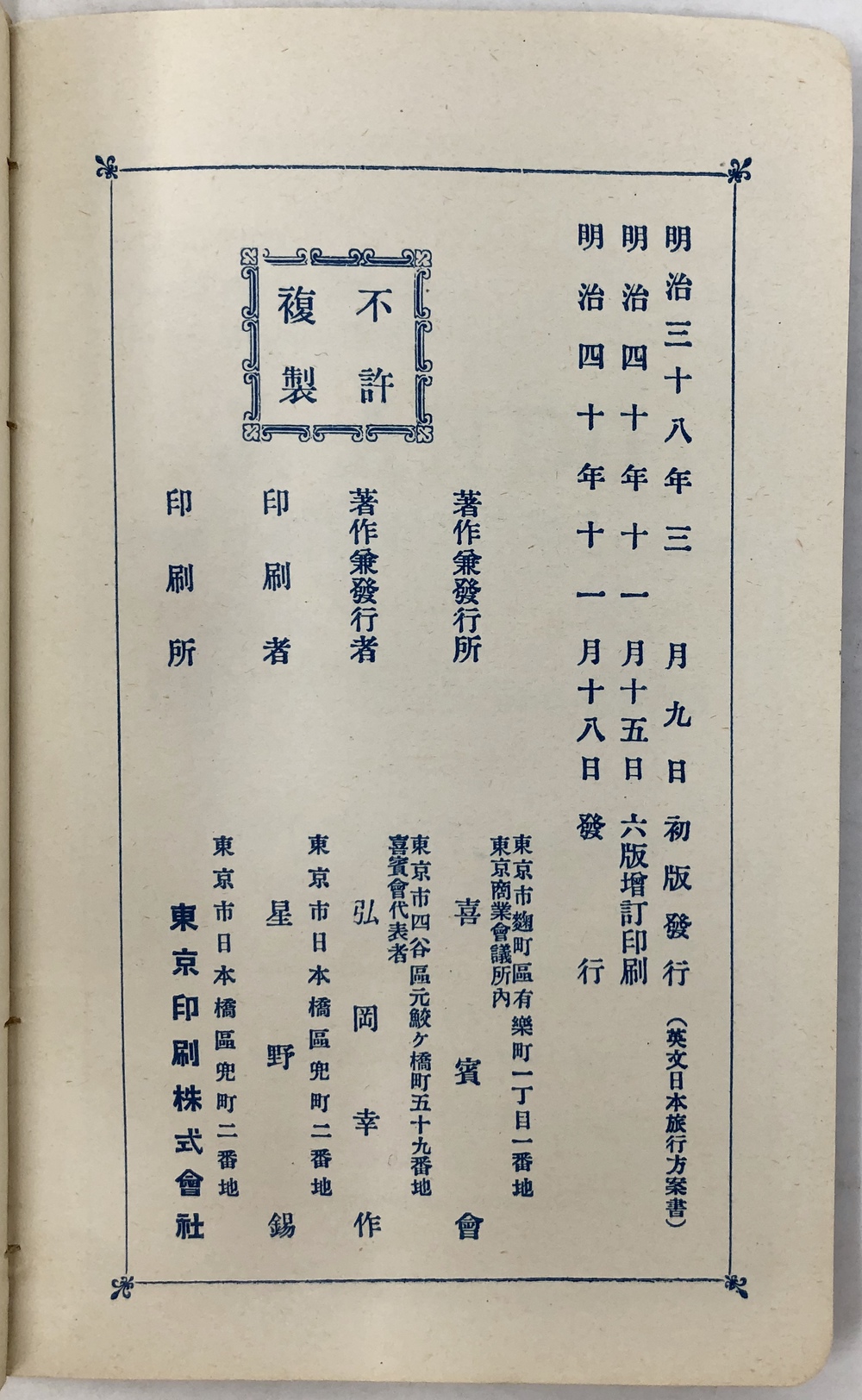 1. 喜賓会 / (東京勧業博覧会)『日本での旅行に役立つ覚書と旅行日程案』(折込地図付属)改訂第6版 1907年 東京刊