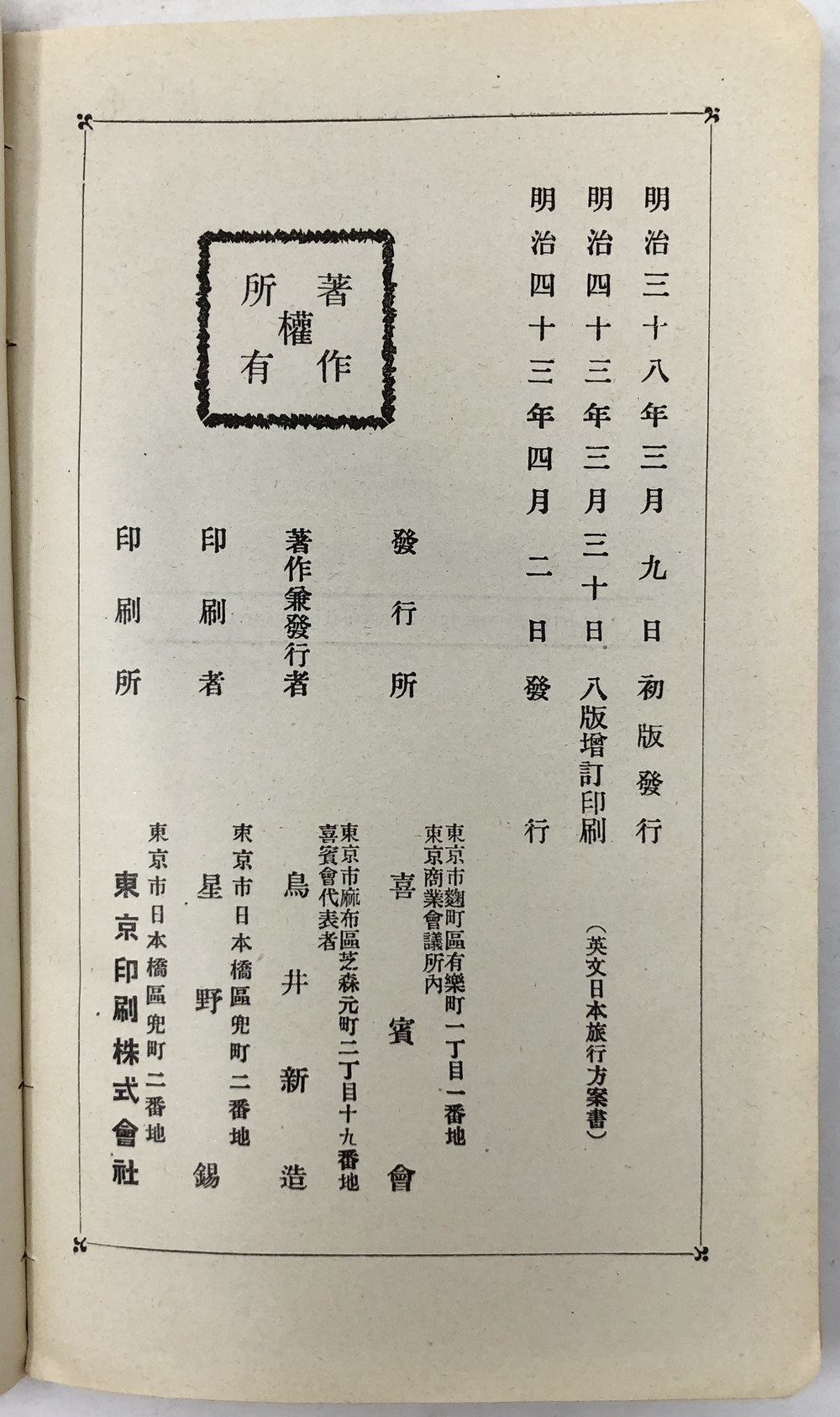 8th Edition, Revised. Tokyo, Tokyo Printing Company LTD. 1910.
