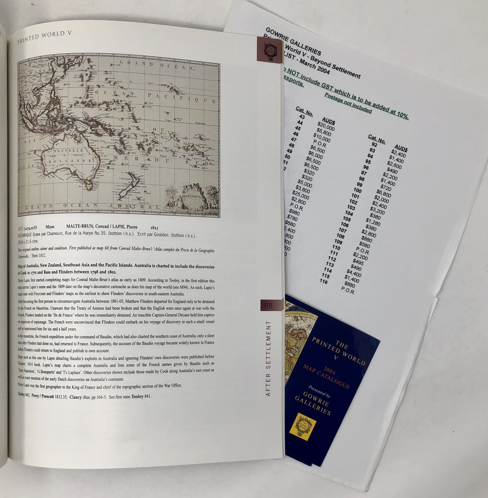 THE PRINTED WORLD V: Beyond Settlement. Containing the Preeston collection of rare early Australian maps. A catalogue of rare World, Australian, Southeast Asian and Pacific Maps from 1493 to 1847 featuring a fine selection of 17th century Dutch Sea Charts