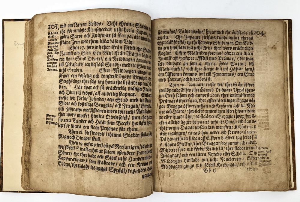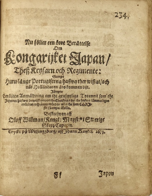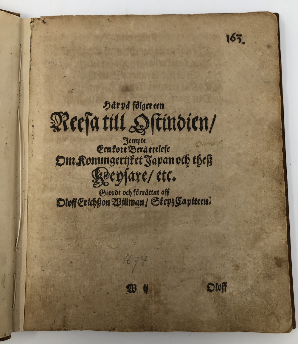Härpå fölger een Reesa till Ostindien / Jempte Een kort Berättelese Om konungerijket Japan och theß Keysare / etc. [with] Nufölier een kort Berättelse Om Kongarijket Japan / Theß Keysarn, och Regimente...