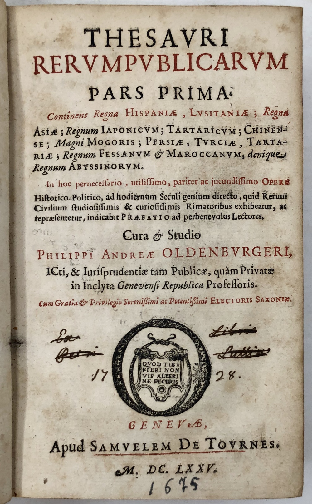 THESAVRI RERVMPVBLICARVM. PARS PRIMA. Continens Regna HISPANIAE, LVSITANIAE; Regna ASIAE; Regnum IAPONICVM; TARTARICVM; CHINENSE; Magni MOGORIS…