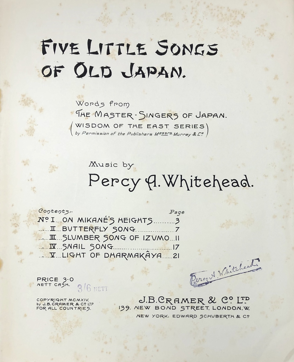 FIVE LITTLE SONGS OF OLD JAPAN. words from THE MASTER SINGERS OF JAPAN. (Wisdom of the East Series)