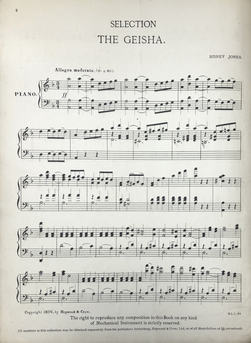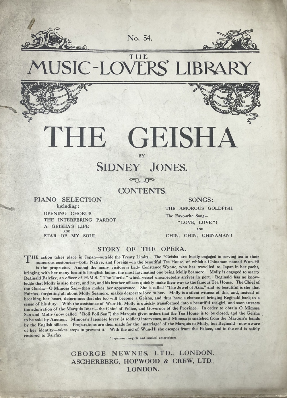 THE GEISHA: SELECTED WORDS & MUSIC. (The Music-Lovers' Library No. 54)