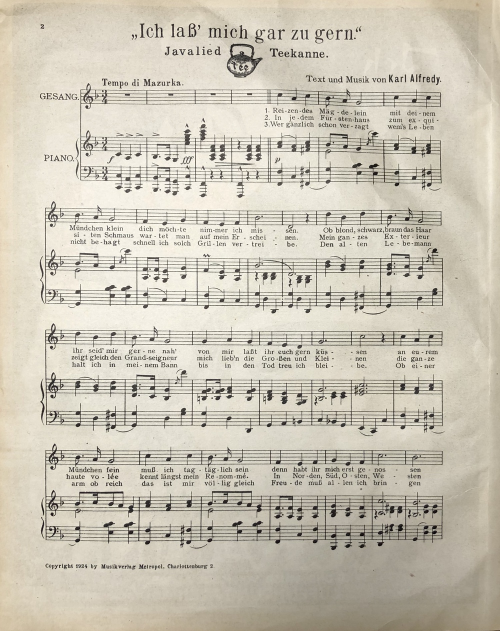 "Ich laß mich gar zu gern." Javalied Teekanne.