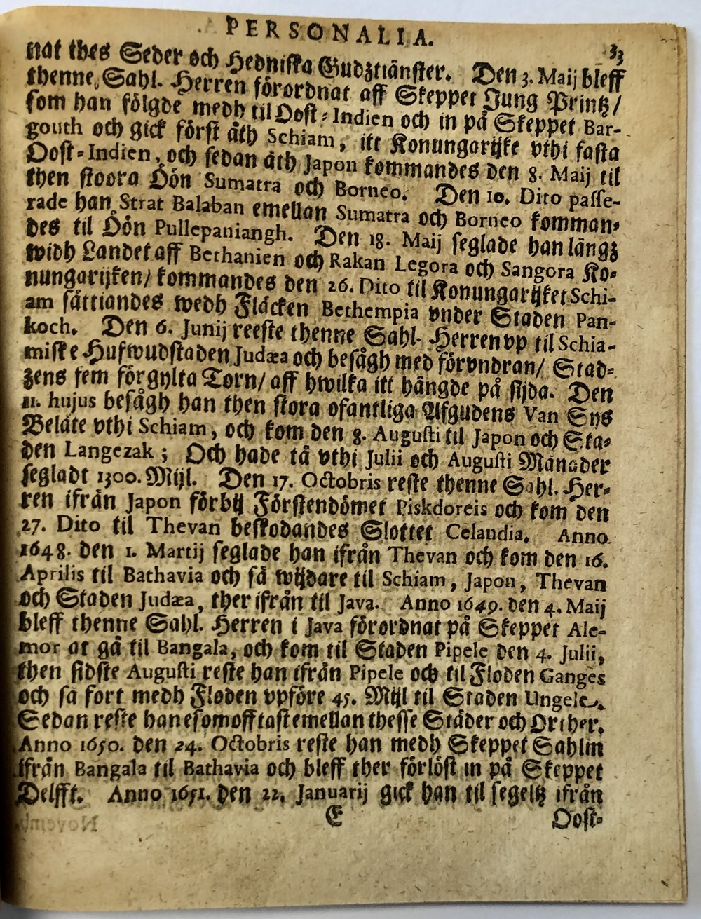 『1678年5月12日ストックホルム聖ヤコブ教会で行われたベリエンシェーナに捧げられた追悼演説(ベリエンシェーナの日本を含む東インド航海日誌抄付属)』