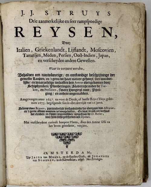 Drie aanmerkelijke en seer rampspoedige REYSEN, Door Italië, Griekenlandt, Lijslandt, Moscovien, Tartarijen, Meden, Persien, Oost-Indien, Japan, en verscheiden andere Gewesten….