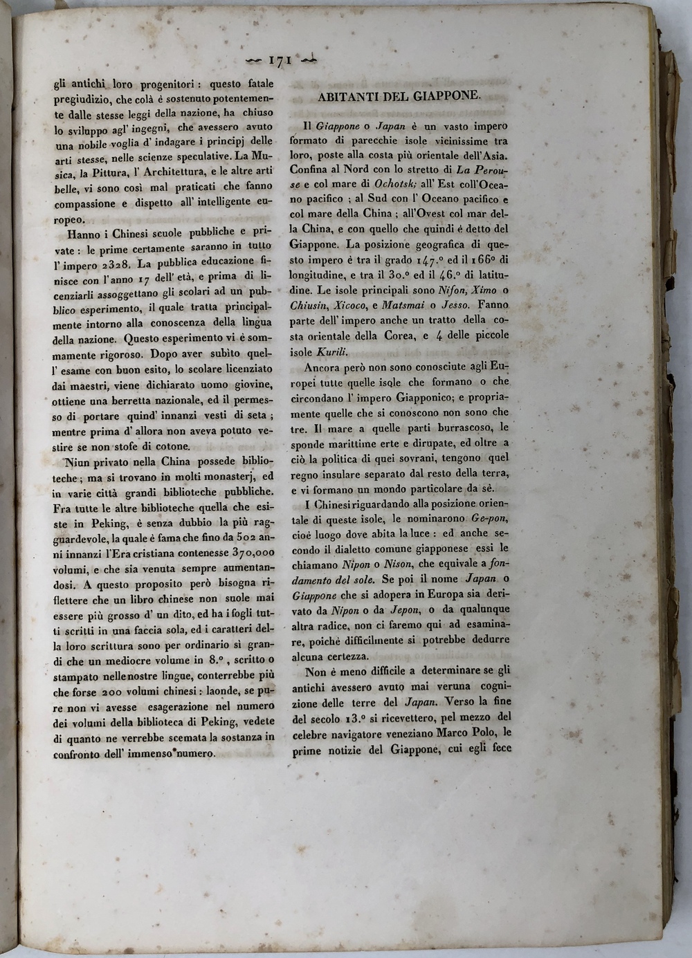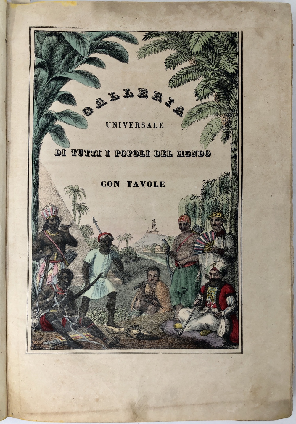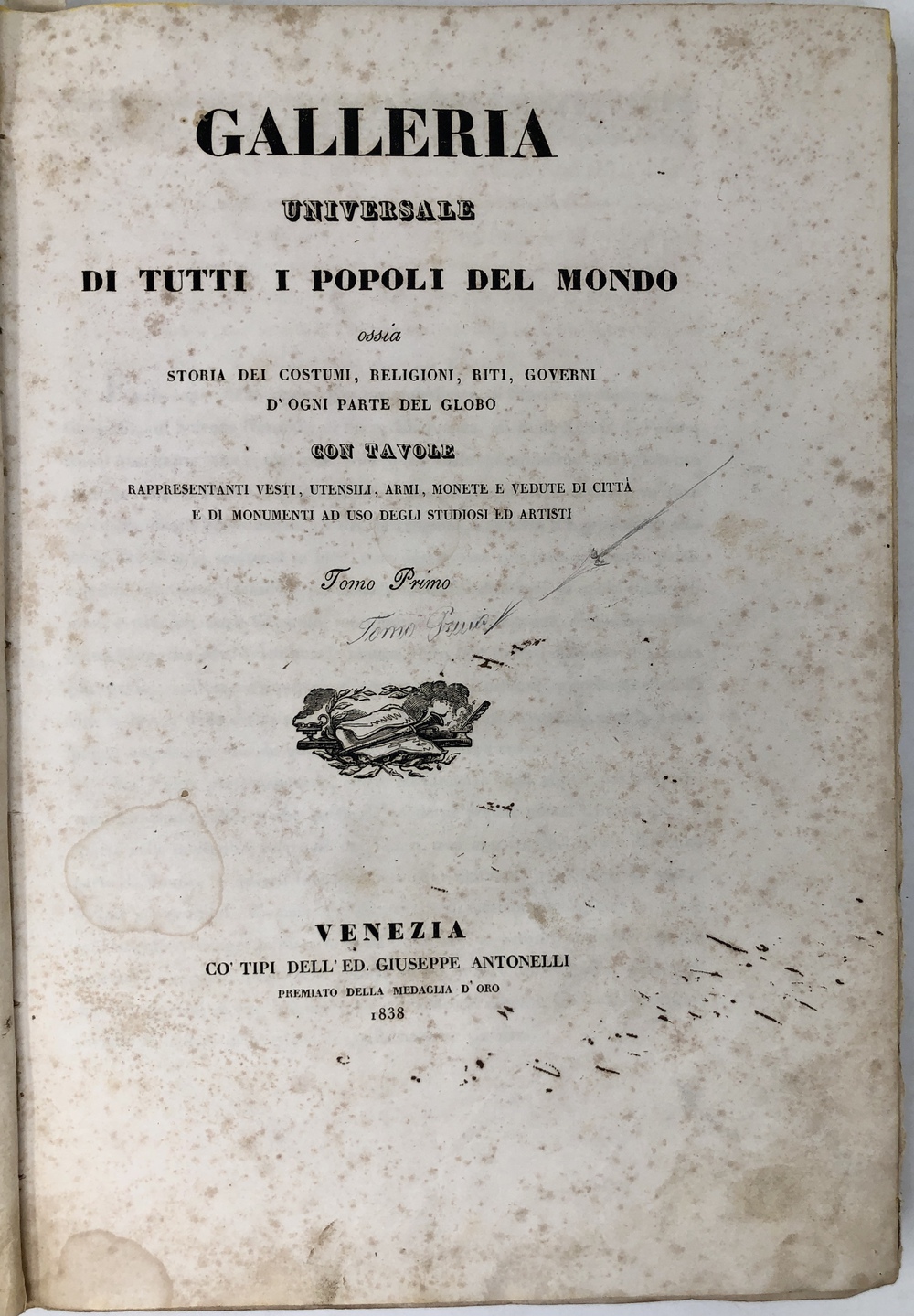 GALLERIA UNIVERSALE. DI TUTTI I POPOLI DEL MONDO ossia STORIA DEI COSTUMI, RELIGIONI, RITI, GOVERNI D’OGNI PARTE DEL GLOBO CON TAVOLE…Tomo Primo.