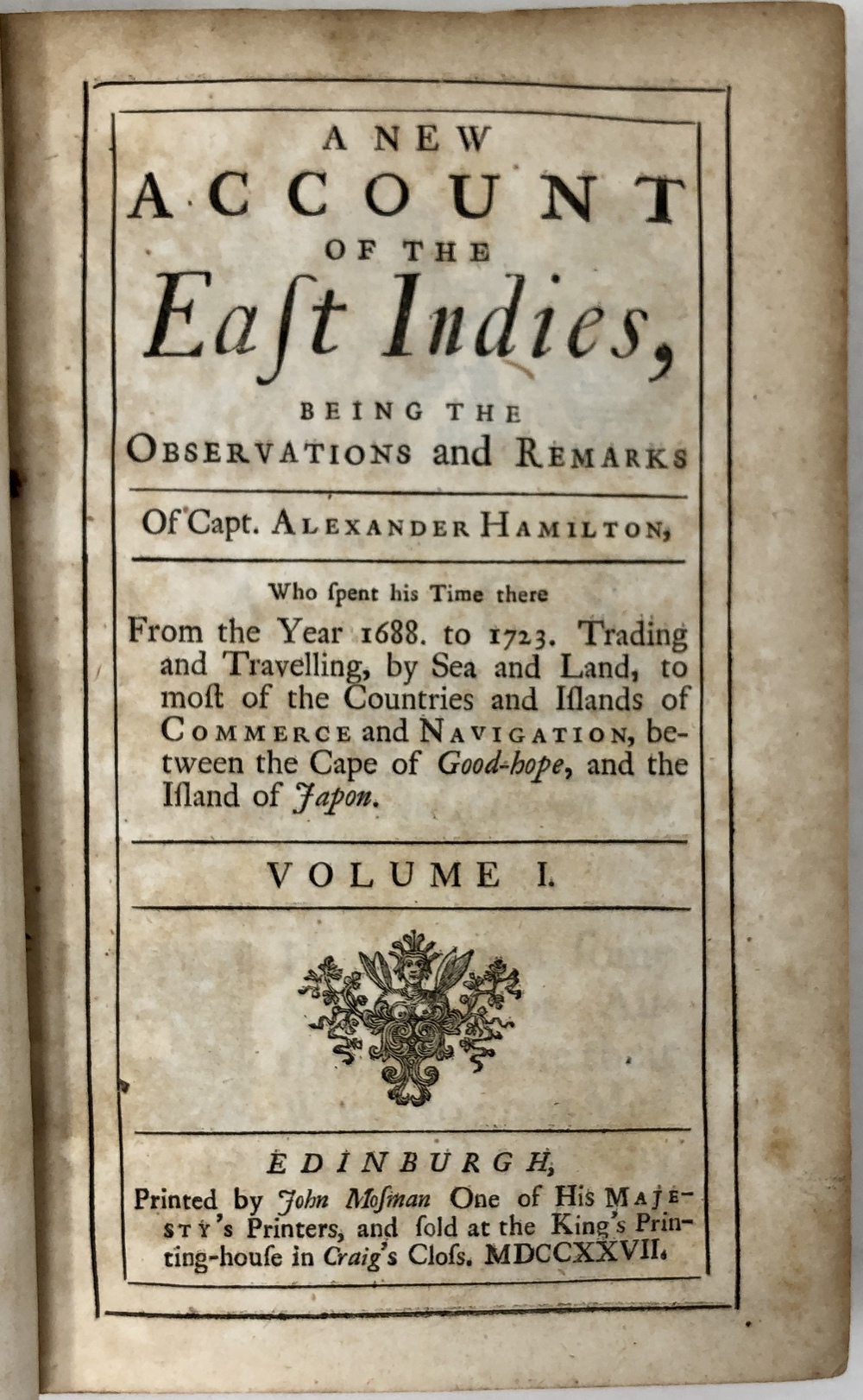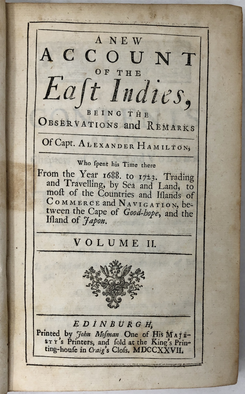 A NEW ACCOUNT OF THE East Indies, BEING THE OBSERVATIONS AND REMARKS Of Capt. Alexander Hamilton, Who spent his time there From the Year 1688. to 1723….