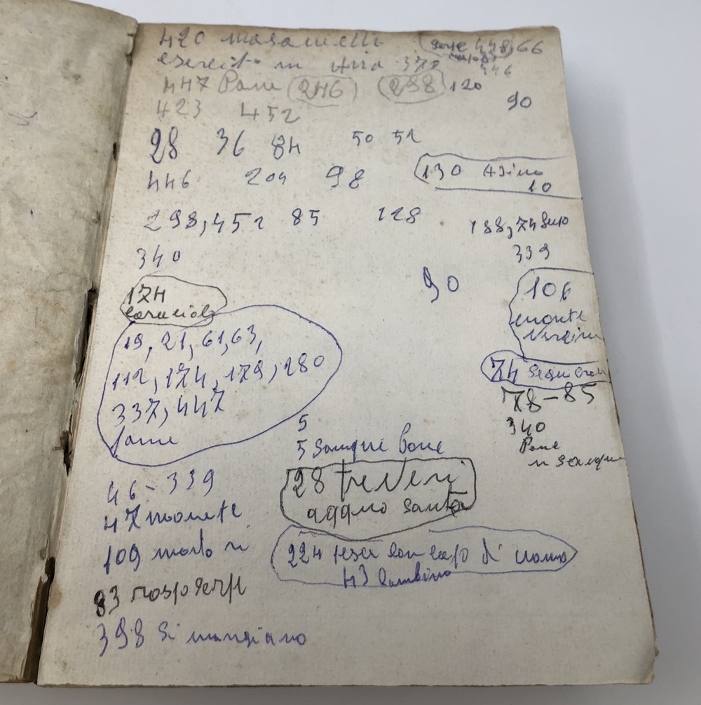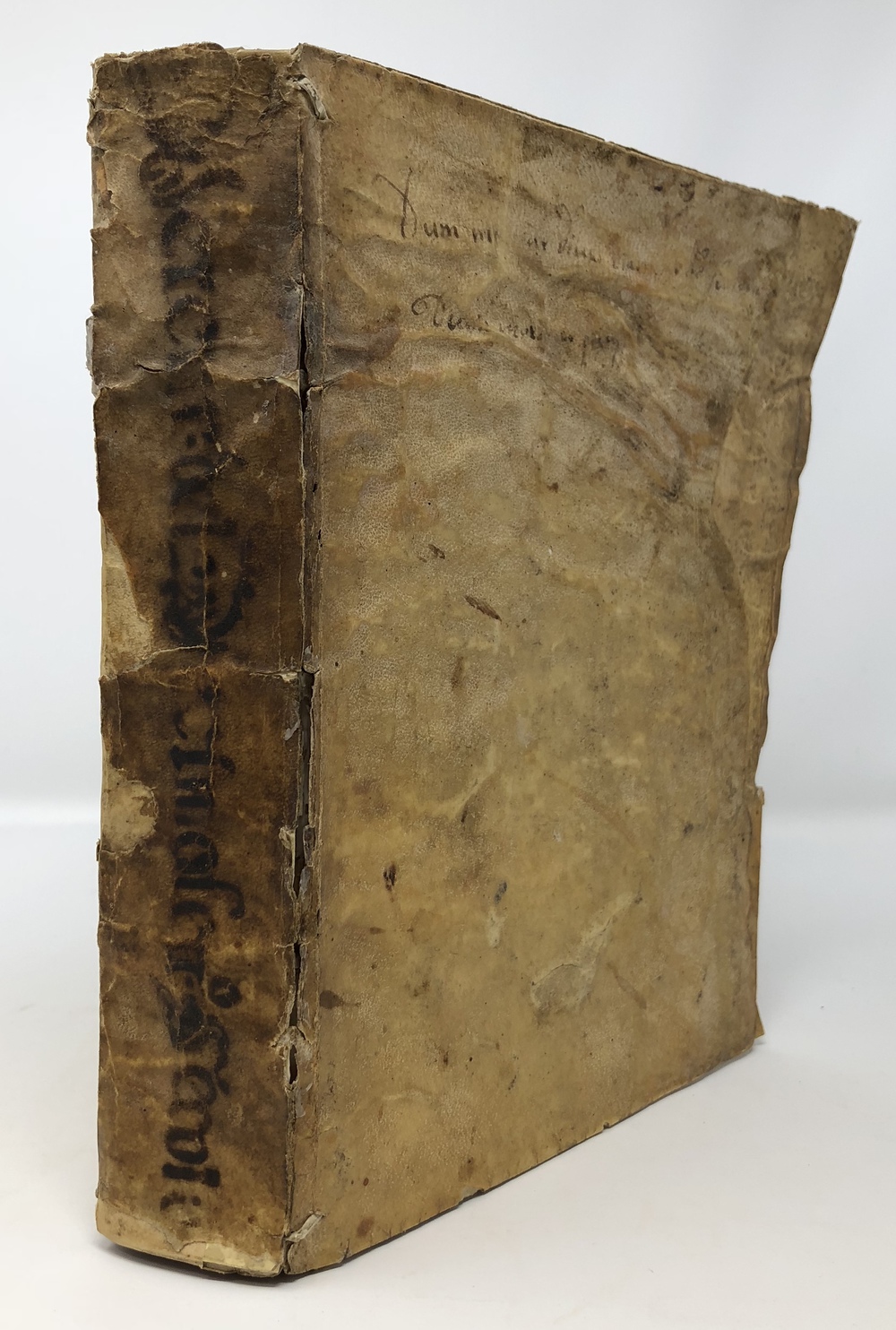 刊行当時のヴェラム装丁だが、本体は後年の綴じ直し。タイトルページから100ページあたりまで紙右端に破れと補修の形跡あり。一部テキスト浸食箇所もあるが、手書きでテキストを補っている。