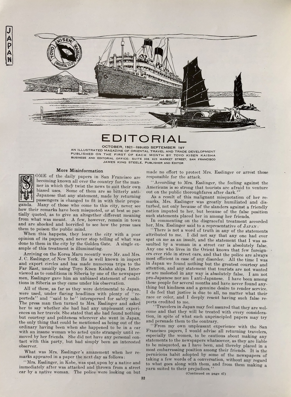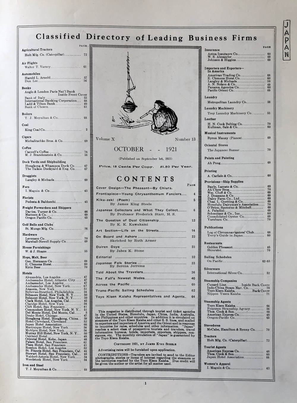 "Japan" - An Illustrated Magazine of Oriental Travel and Trade Development.