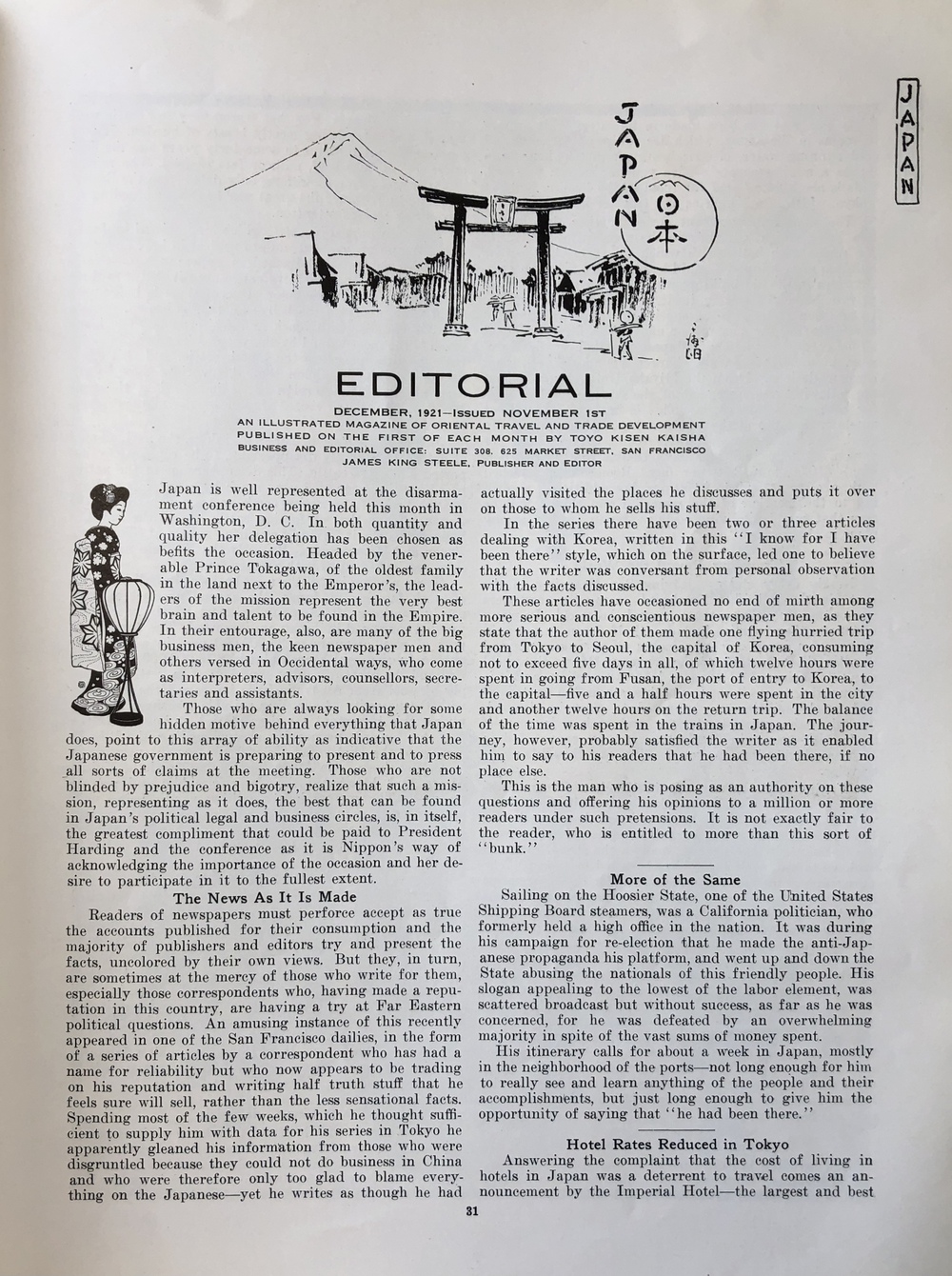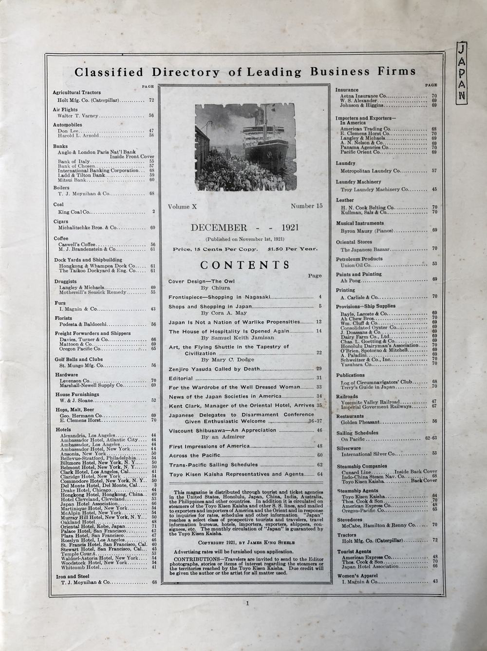 "Japan" - An Illustrated Magazine of Oriental Travel and Trade Development.