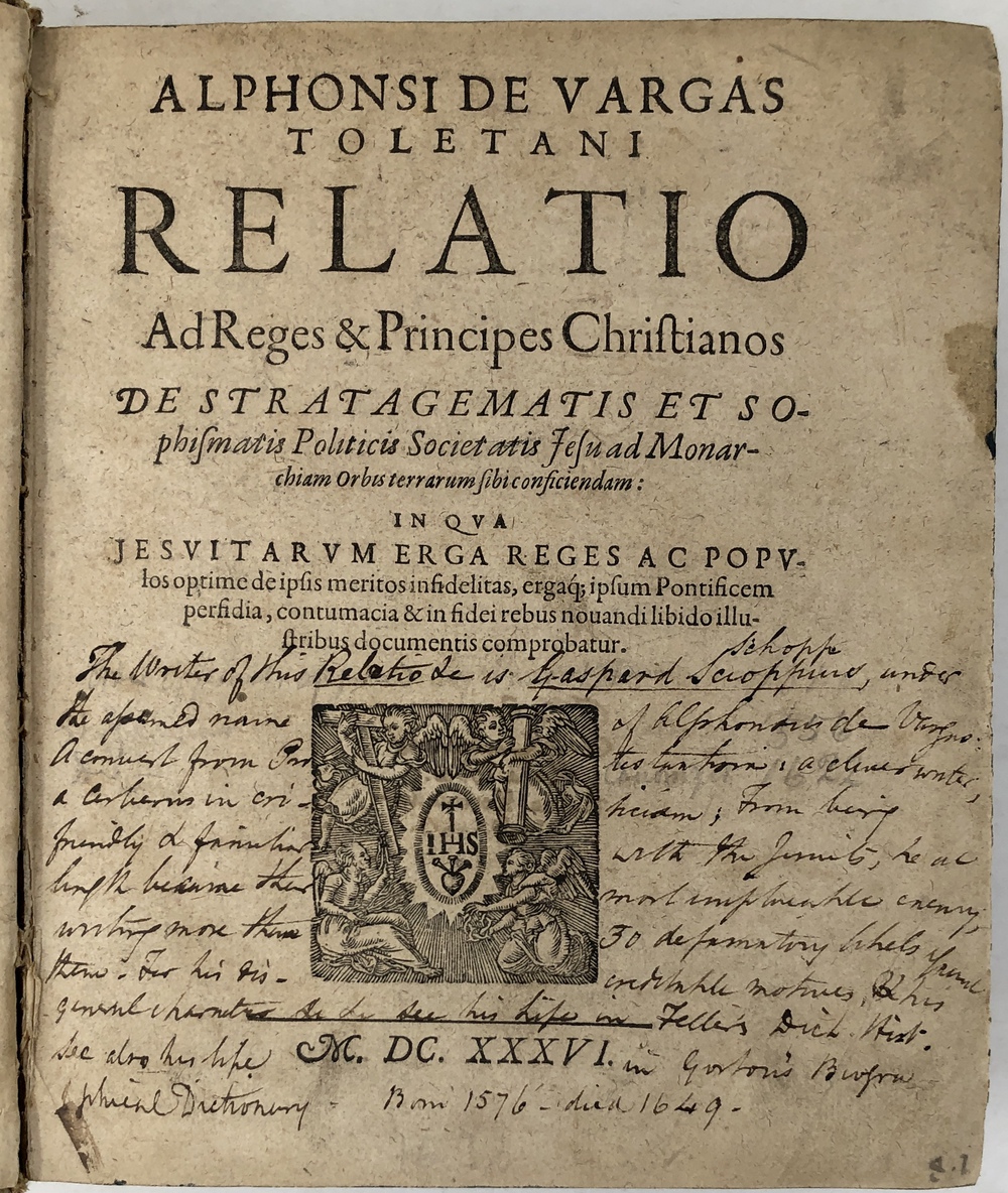 RELATIO Ad Reges & Principes Christianos DE STRATA GEMATIS ET SOphismatis Politicis Societatis Jesu ad Monarchiam orbis terrarium sibi consiciendam:…
