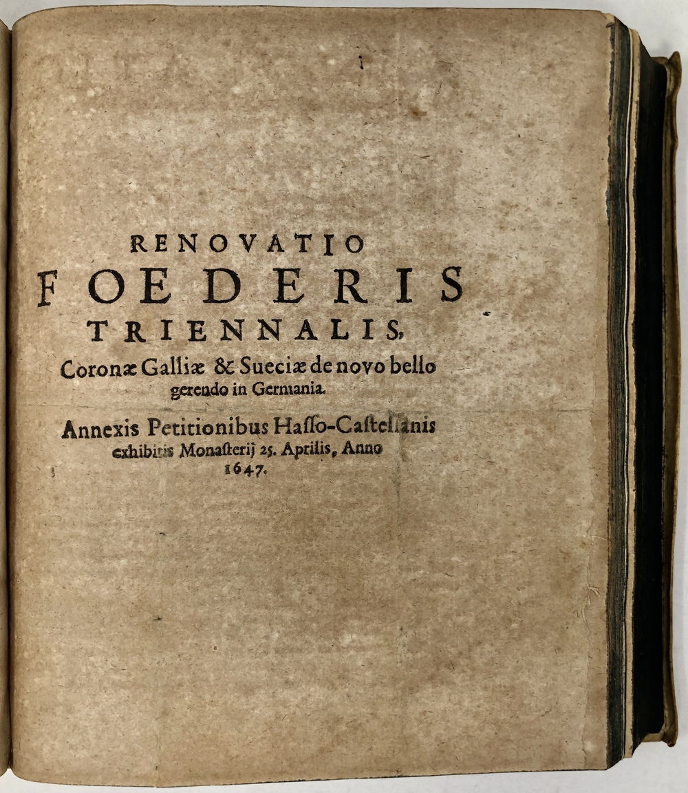 RENOVATIO FOEDERIS TRIENNALIS, Coronae Galliae & Sueciae de novo bello merendó in Germania. Annexis Petitionibus Hasso-Castelianis exhibitis Monasterij 25. Aprilis, Anno 1647.