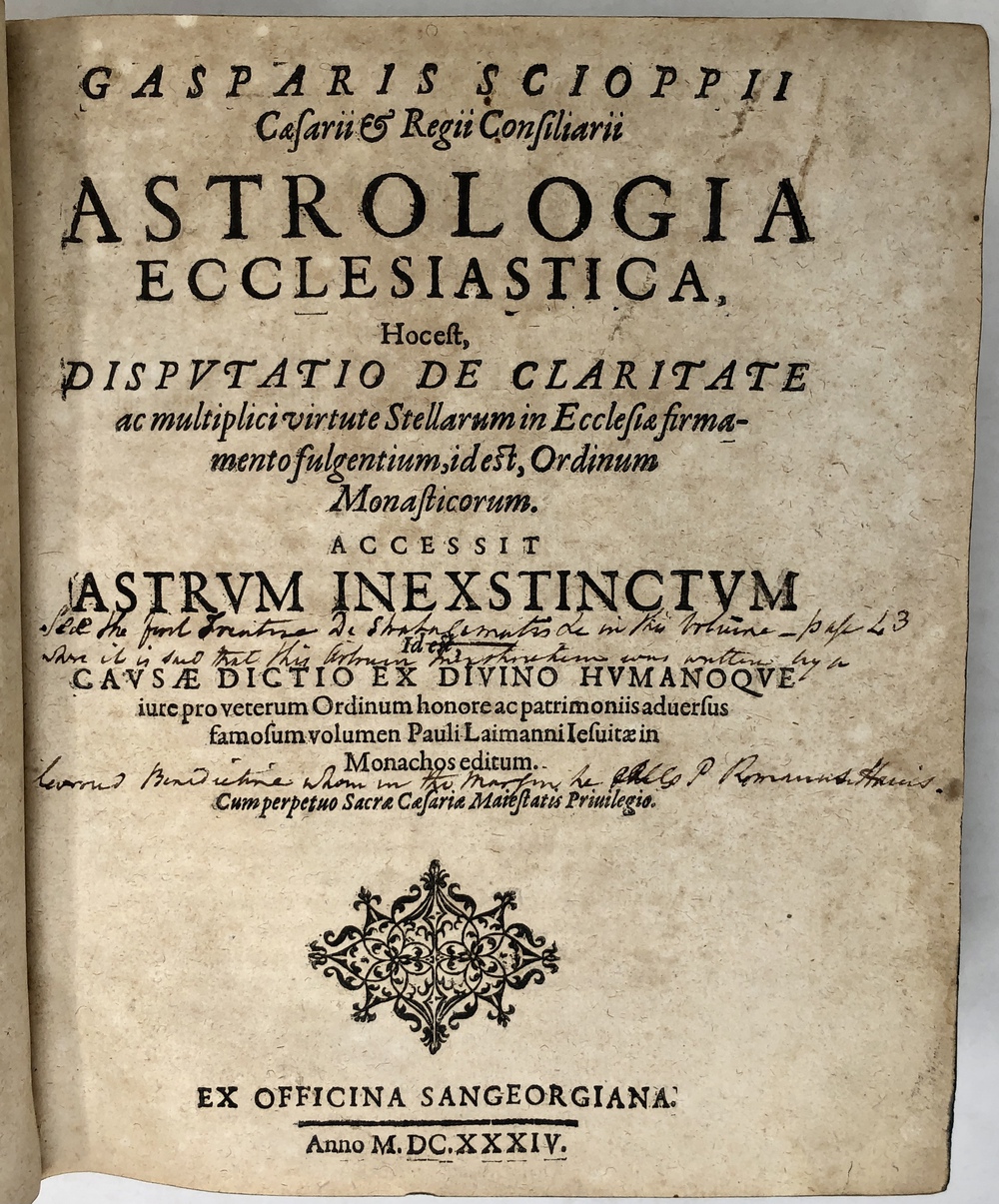ASTROLOGIA ECCLESIASTICA, Hoc est, DISPV(U)TATIO DE CLARITATE ac multiplici virtute Stellarum in Ecclesiae firmamento sulgentium, idees, Ordinum Monasticorum….