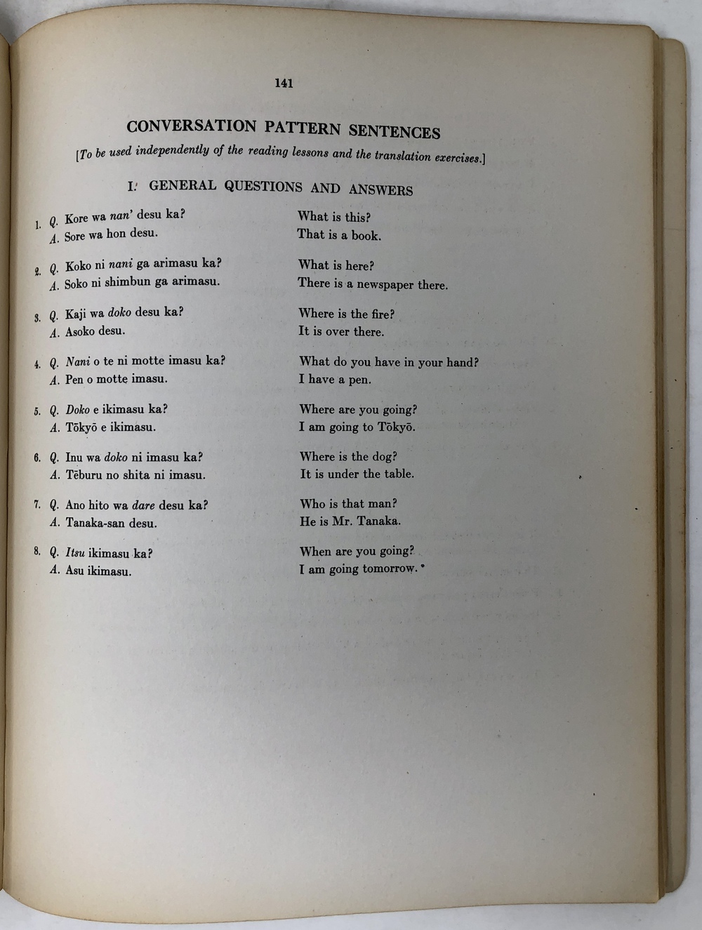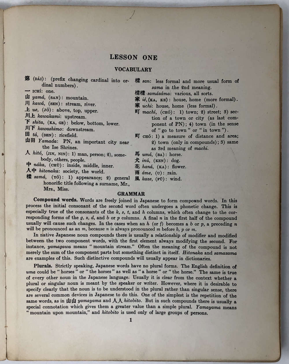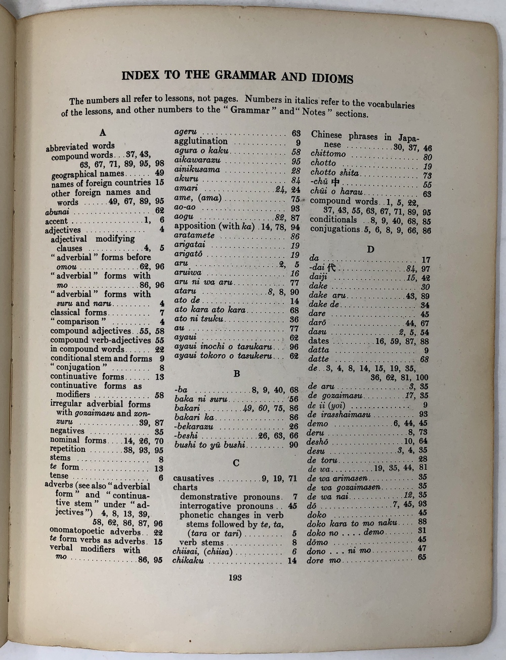ELEMENTARY JAPANESE FOR UNIVERSITY STUDENTS. VOCABULARIES, GRAMMAR AND NOTES.