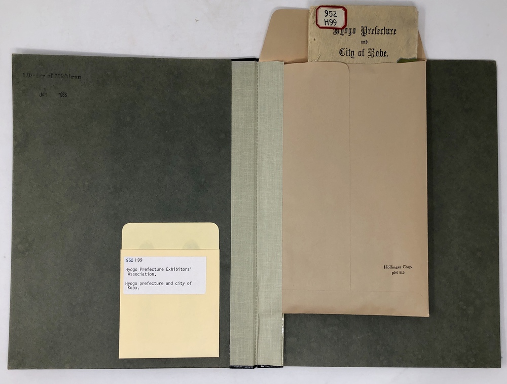 図書館旧蔵本のためラベル、バーコードの貼り付け等あり。旧蔵機関作成の保存封筒つき。綴じ紐に外れ、緩みあり。1葉を袋綴じ状にした和装本だが、旧蔵者が誤って袋状を切り開いてしまっている箇所多数。