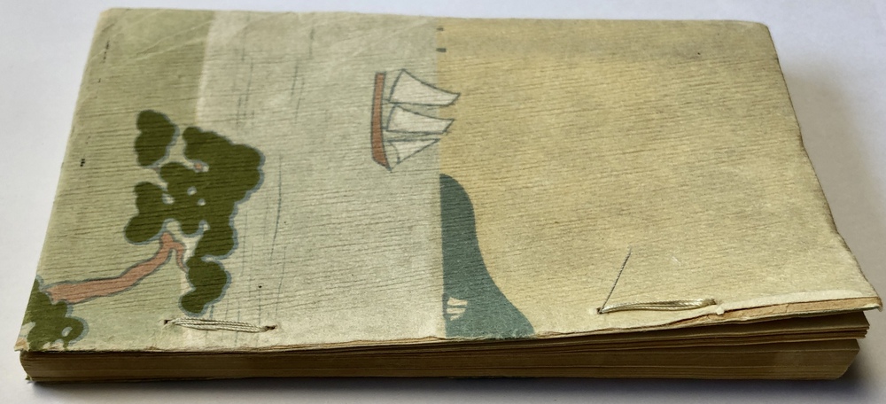 Both covers printed on crepe paper, text printed on folded leaves, bound in Japanese style.