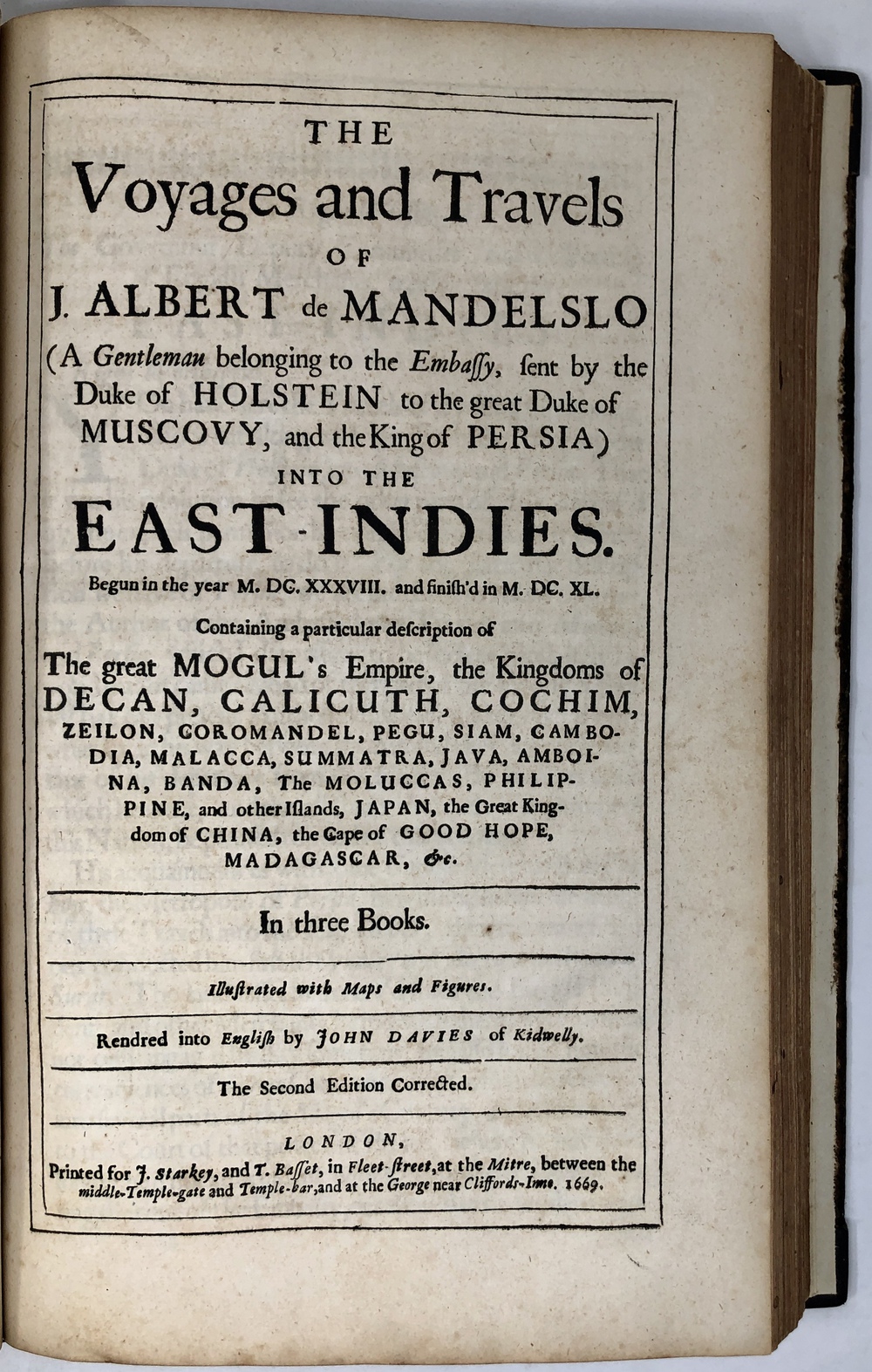 Front., Title., 9 leaves, pp.1-316, Folded maps and plates: [5], plates: [2], Title. for Mandelslo’s voyages, 2 leaves, pp.1-35, 30[i.e.36], 37-232, 5 leaves(index), 1 leaf(blank),