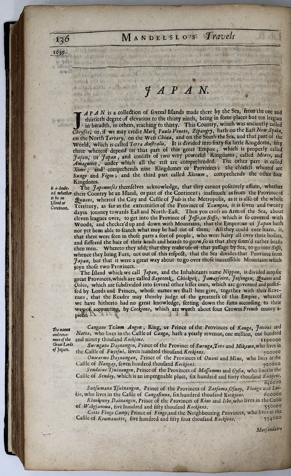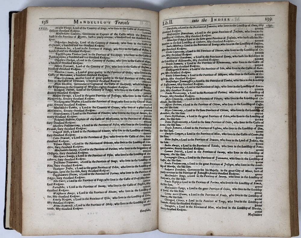 『1633年から1639年にかけてフレデリック3世によって派遣されたモスコヴィアとペルシャ王国への使節団の航海と旅行の記録:モスクワ、タタール、ペルシャその他隣接地域の完全な歴史。さらにマンデルスロによるペルシャから東インドへの旅行記、インド、モンゴル帝国、東方諸島、日本、中国その他の特別な叙述を付して』