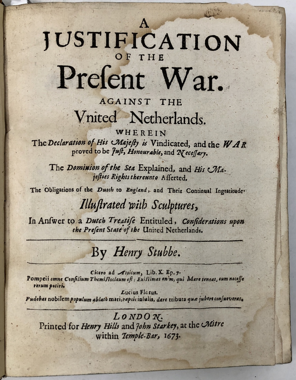 A JUSTIFICATION OF THE Present War. AGAINST THE Vunted Netherlands….In Answer to a Dutch Treatise Entituled, Considerations upon the Present State of the United Netherlands. [bound with] A FURTHER IUSTIFICATION OF THE PRESENT WAR AGAINST THE United Nether