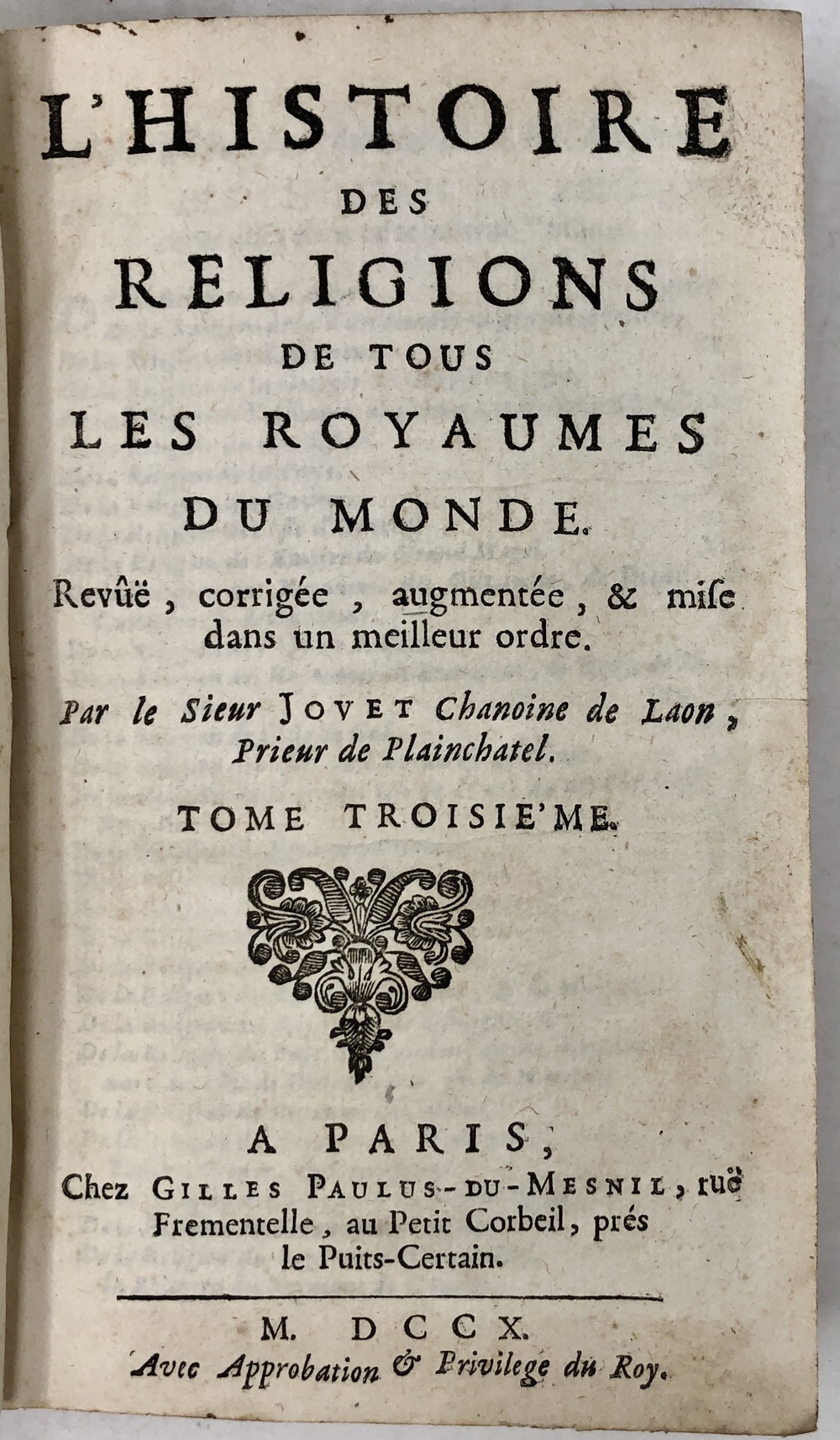 L’HISTOIRE DES RELIGIONS DE TOUS LES ROYAUMES DU MONDE, Revûé, corrigée, augmentée, § mise dans un meilleur ordre.