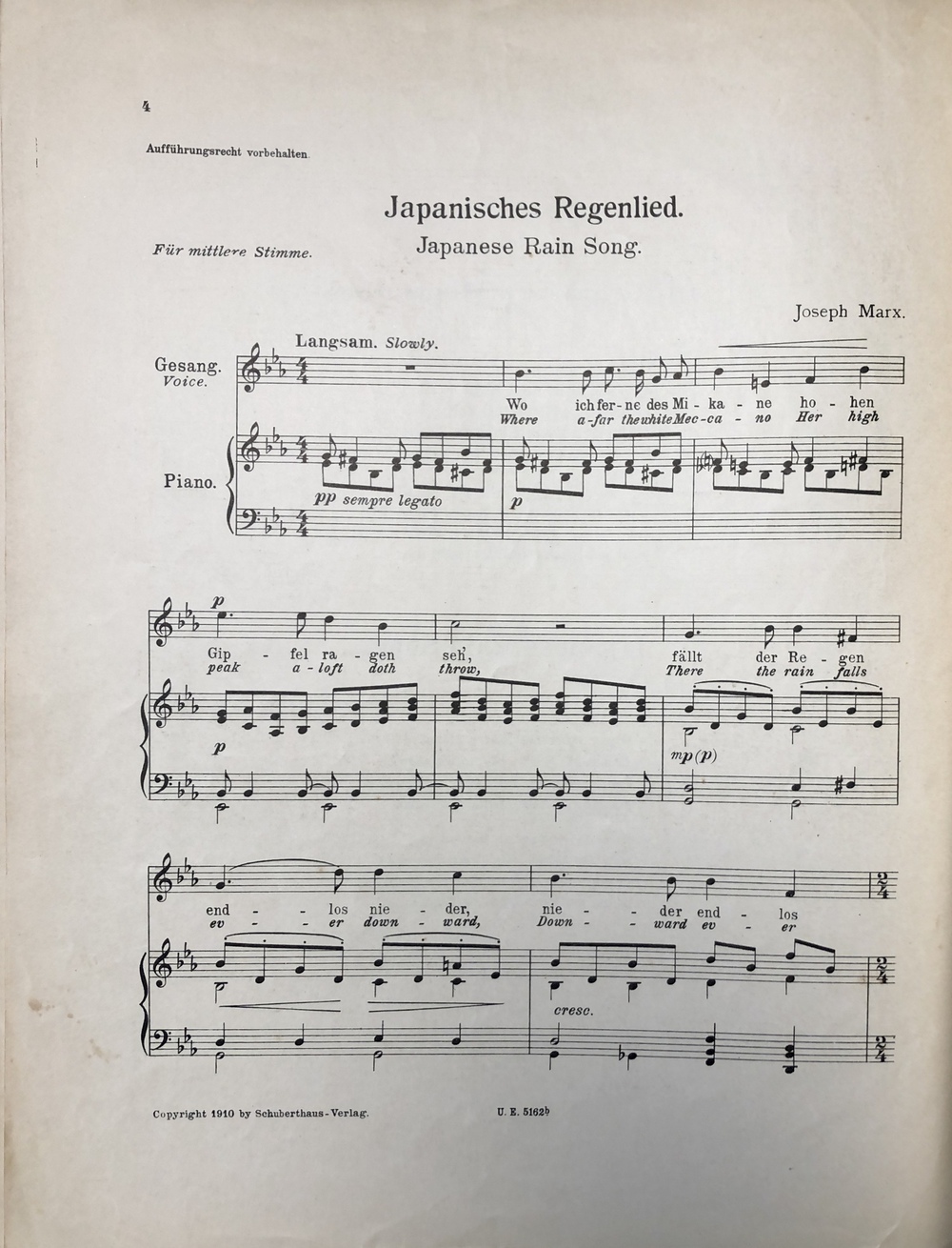 LIEDE UND GESÄNGE. ERSTE FOLGE NR. 13. JAPANISCHES REGENLIED. JAPANESE RAIN SONG.