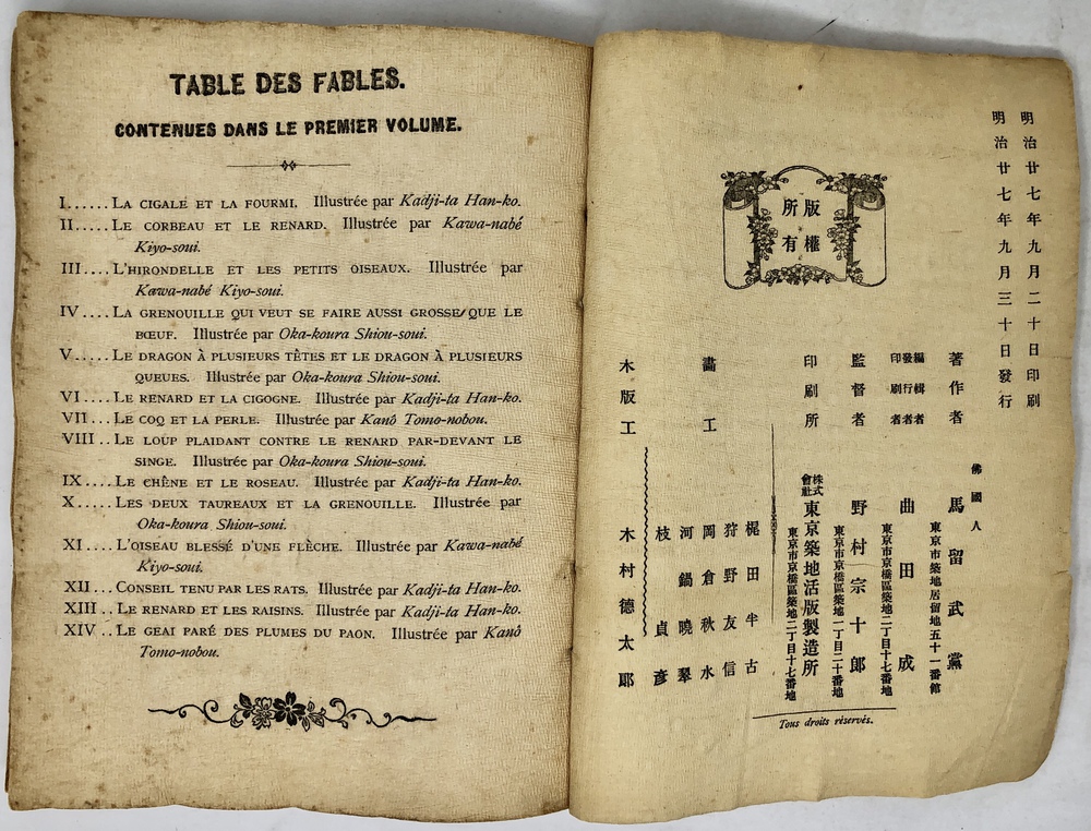 CHOIX DE FABLES DE LA FONTAINE. ILLUSTRÉES PAR UN GROUPE DES MEILLEURS ARTISTES DE TOKIO.