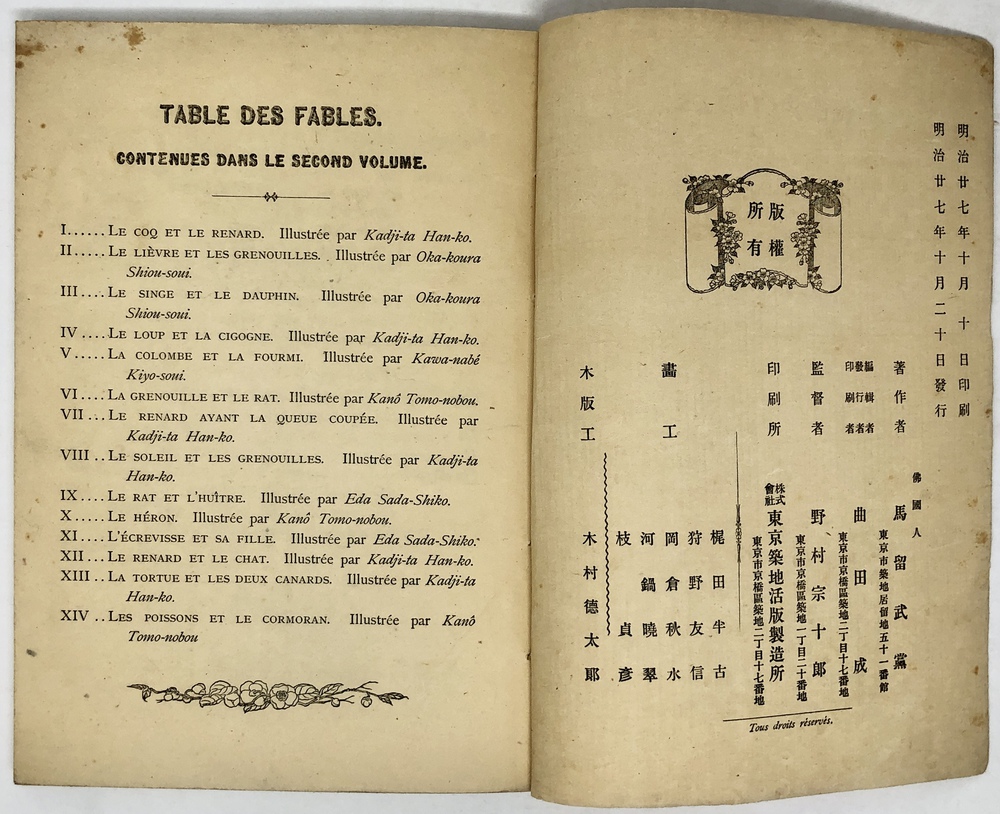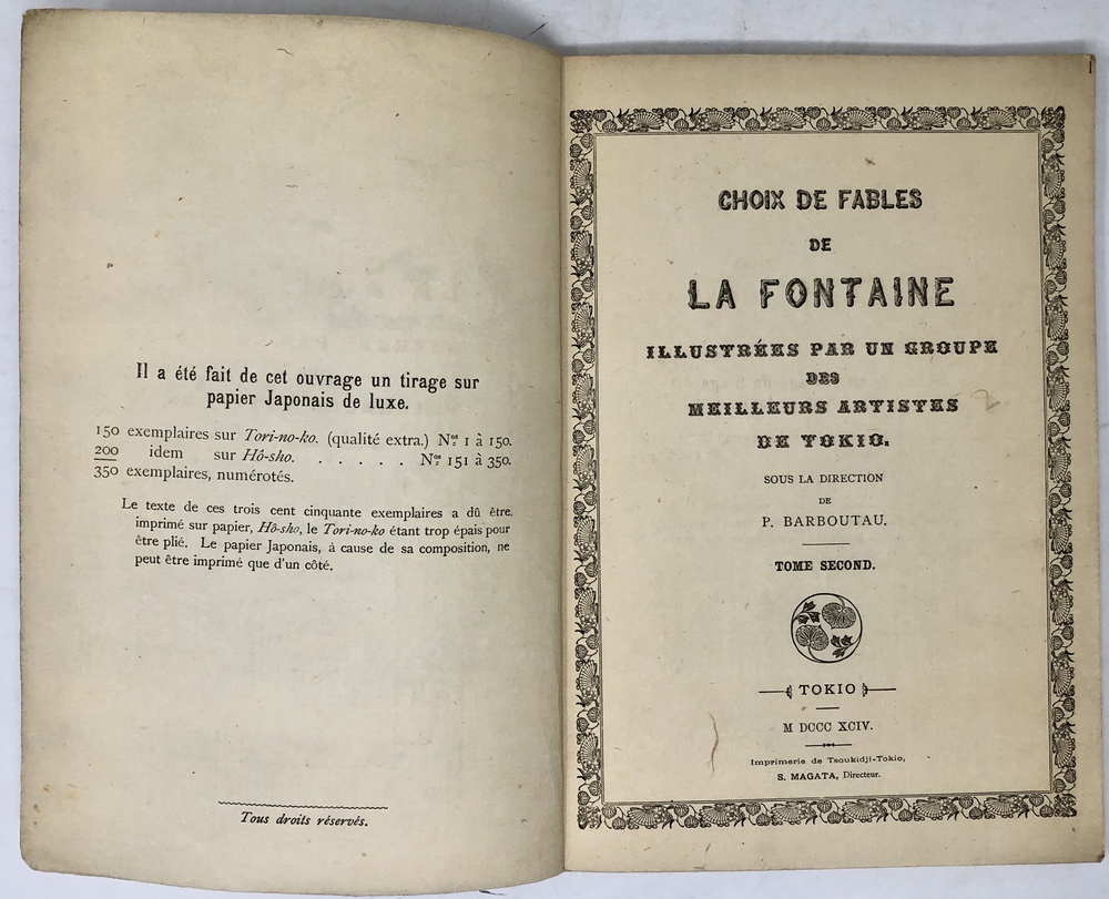 CHOIX DE FABLES DE LA FONTAINE. ILLUSTRÉES PAR UN GROUPE DES MEILLEURS ARTISTES DE TOKIO.