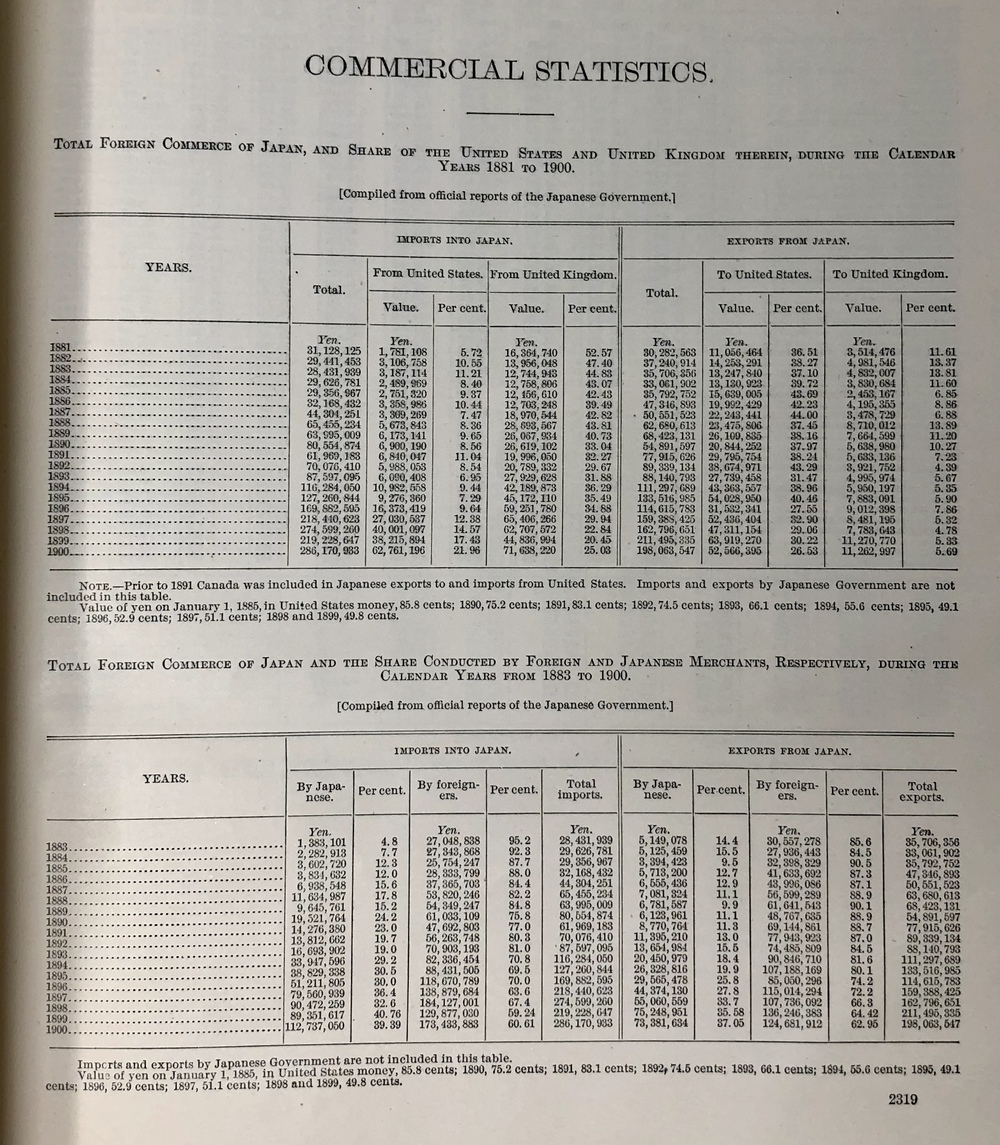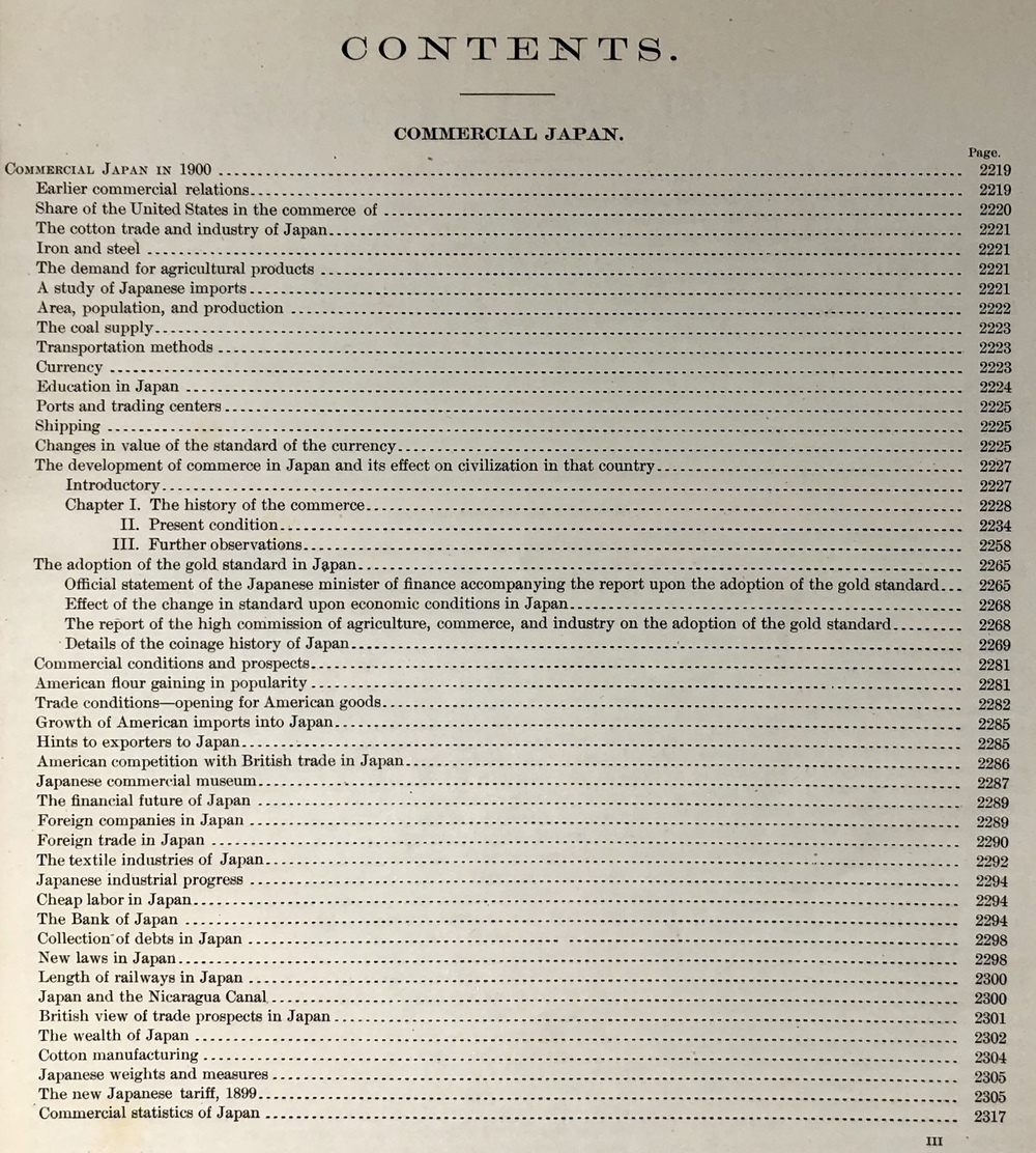 「1900年における日本の商業:地域、人口、産品、鉄道、電信、輸送網、海外取引、ならびに米国と日本との商業について」